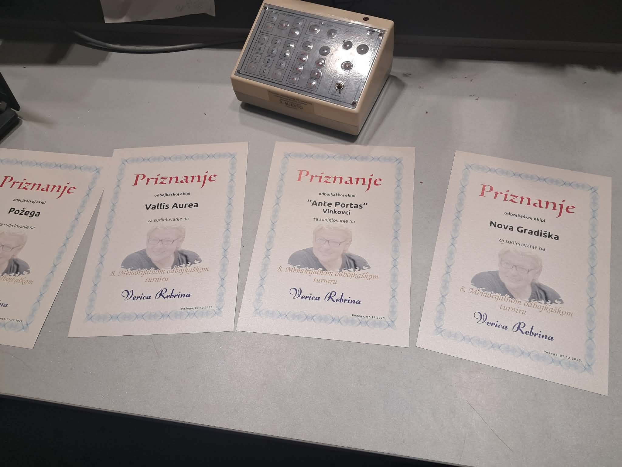 Četiri najbolje ekipe nagrađene su peharima i medaljama koje im je uručila Veričina kćerka Ivana Koretić. Sve ekipe su dobile i priznanja za sudjelovanje koje im je uručio voditelj turnira Jurica Bešlić koji je zajedno s Vericom Rebrinom 2004. godine bio inicijator pokretanja Ženske odbojkaške lige Požega. Krajem listopada počelo je već 21. prvenstvo ŽOL Požega.