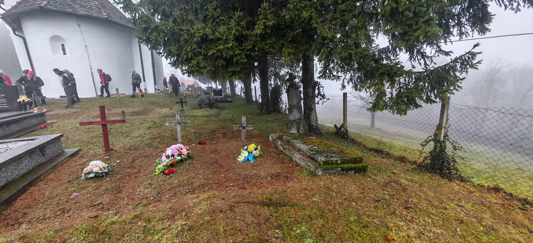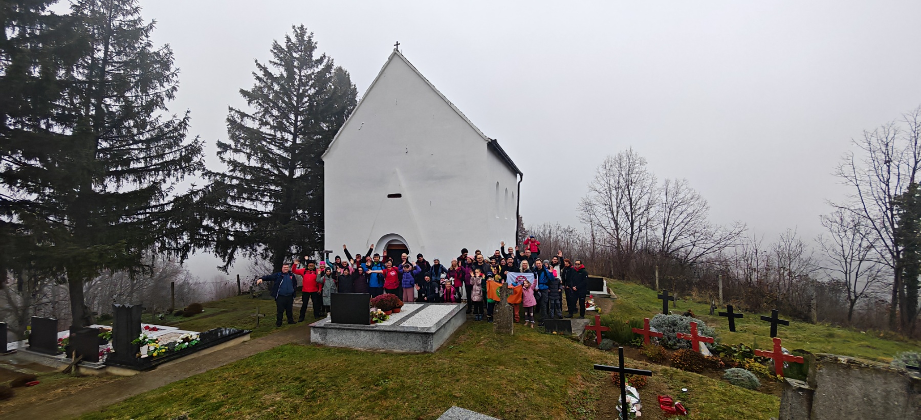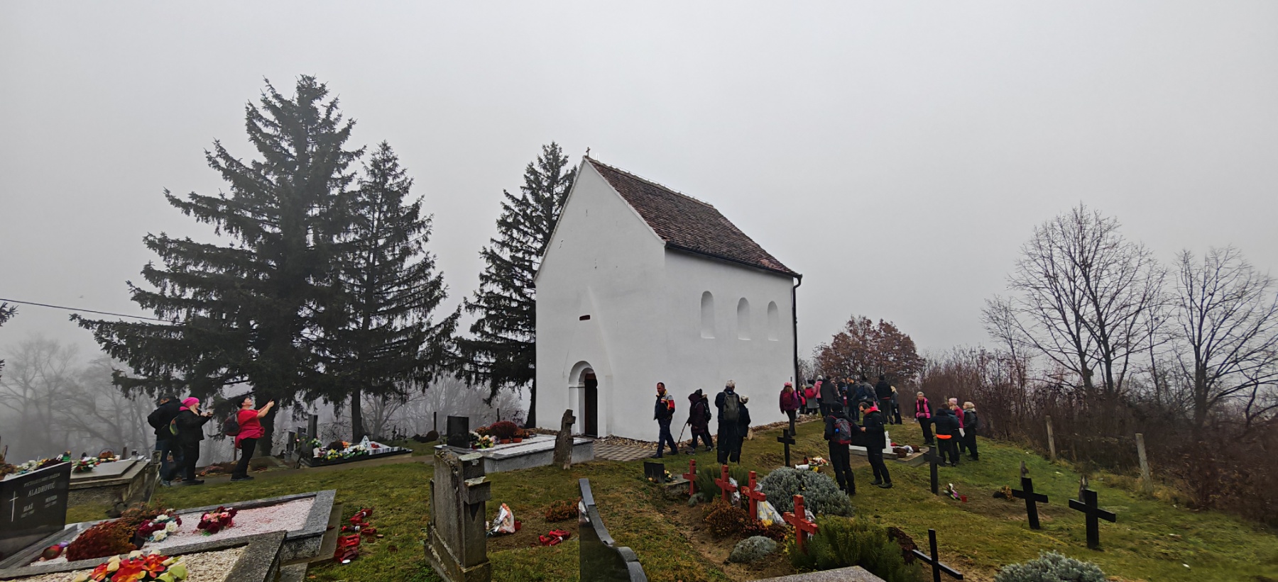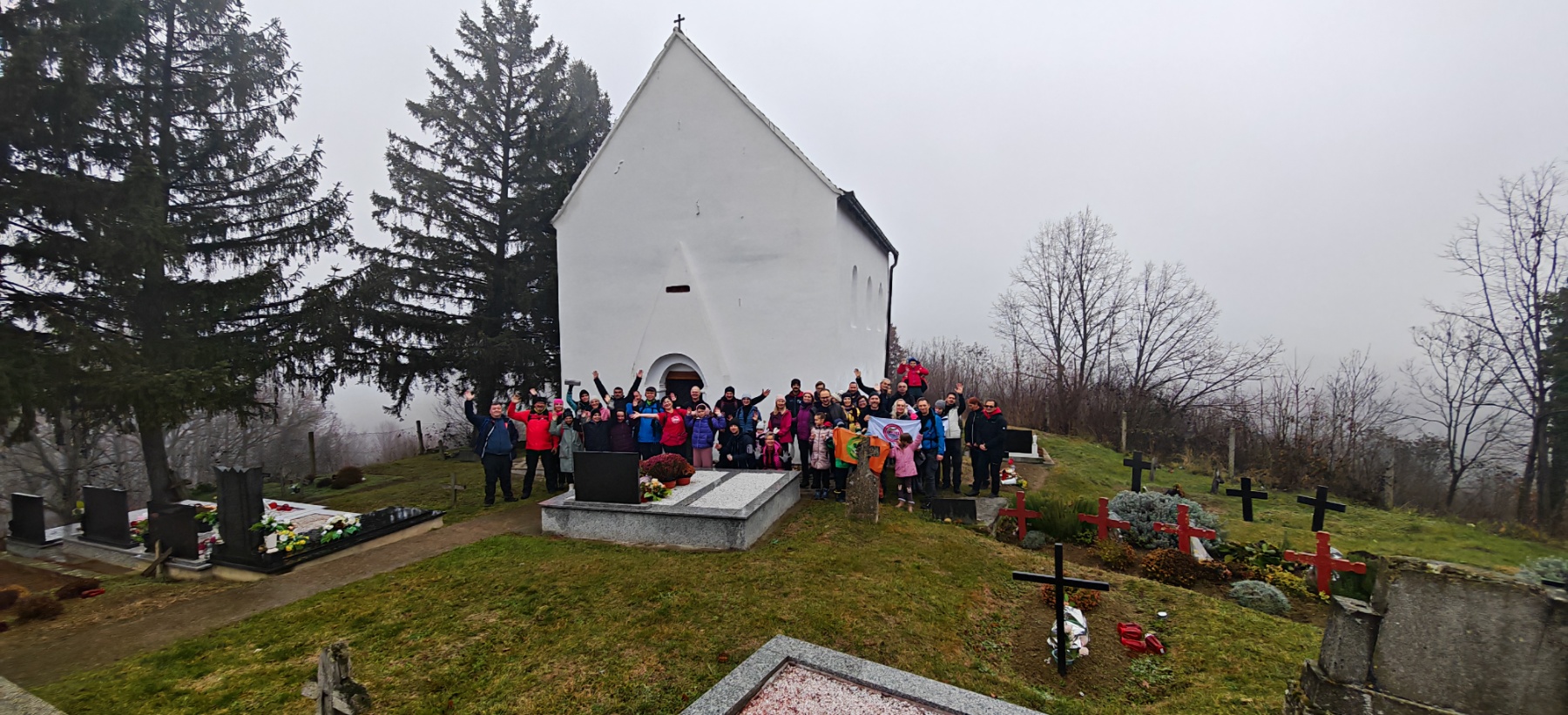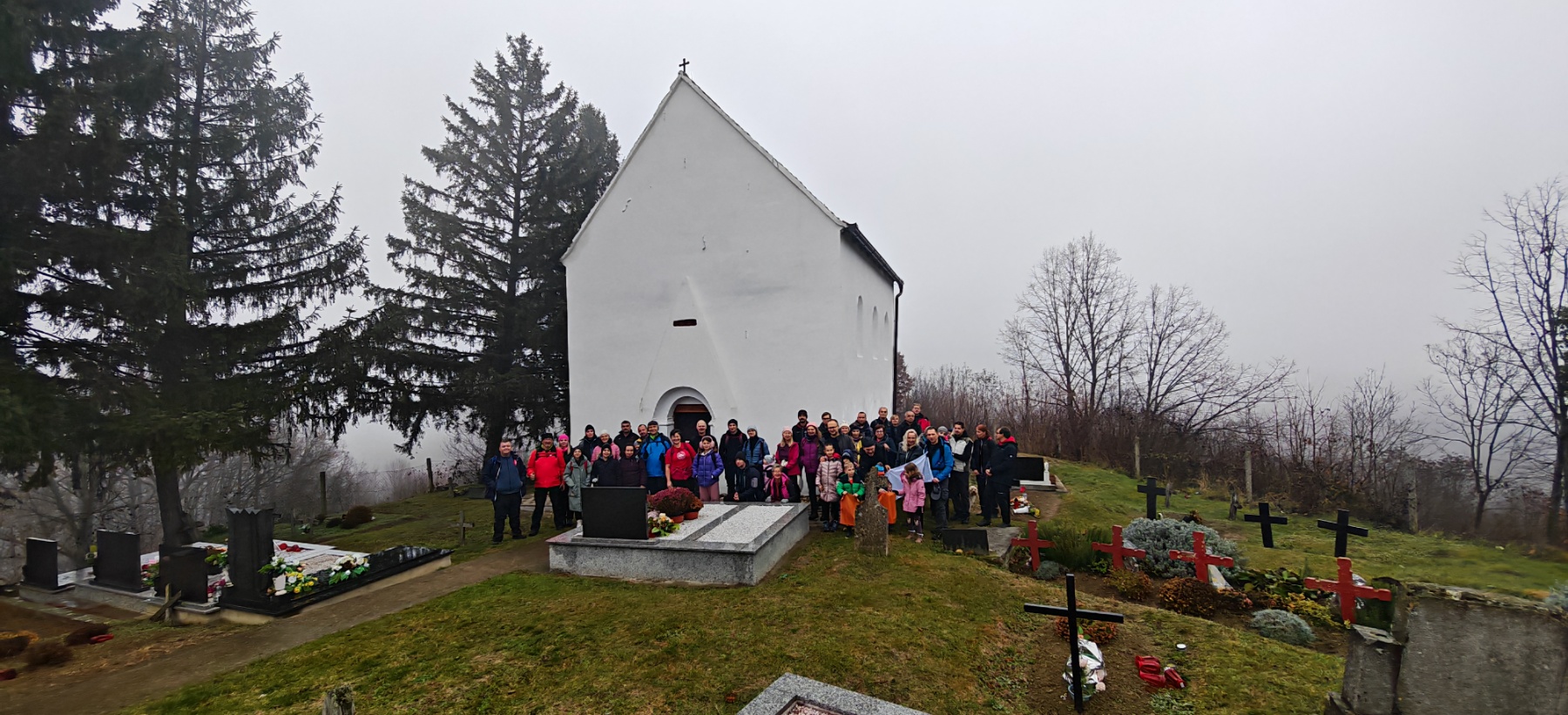 Po dolasku na odredište planinari su obišli ovo staro groblje i najstariju crkvu na ovom području, koju datiraju čak u 13. stoljeće. Ovo nije obična crkva, ovdje su se naši Slavonci skrivali i branili u vrijeme turskih prodora. Zato su je sagradili na brdašcu s kojeg se pruža odličan pogled na Posavinu i Bosnu, otkuda je u to vrijeme dolazio neprijatelj. Iz crkve su pucali na neprijatelje, a oko nje su zakapali svoje najdraže. Kako ne bi oskrnavili ovu ljepotu i poremetili mir koji ovdje vlada, naši planinari brzo napravili zajedničku fotografiju i krenuli natrag.