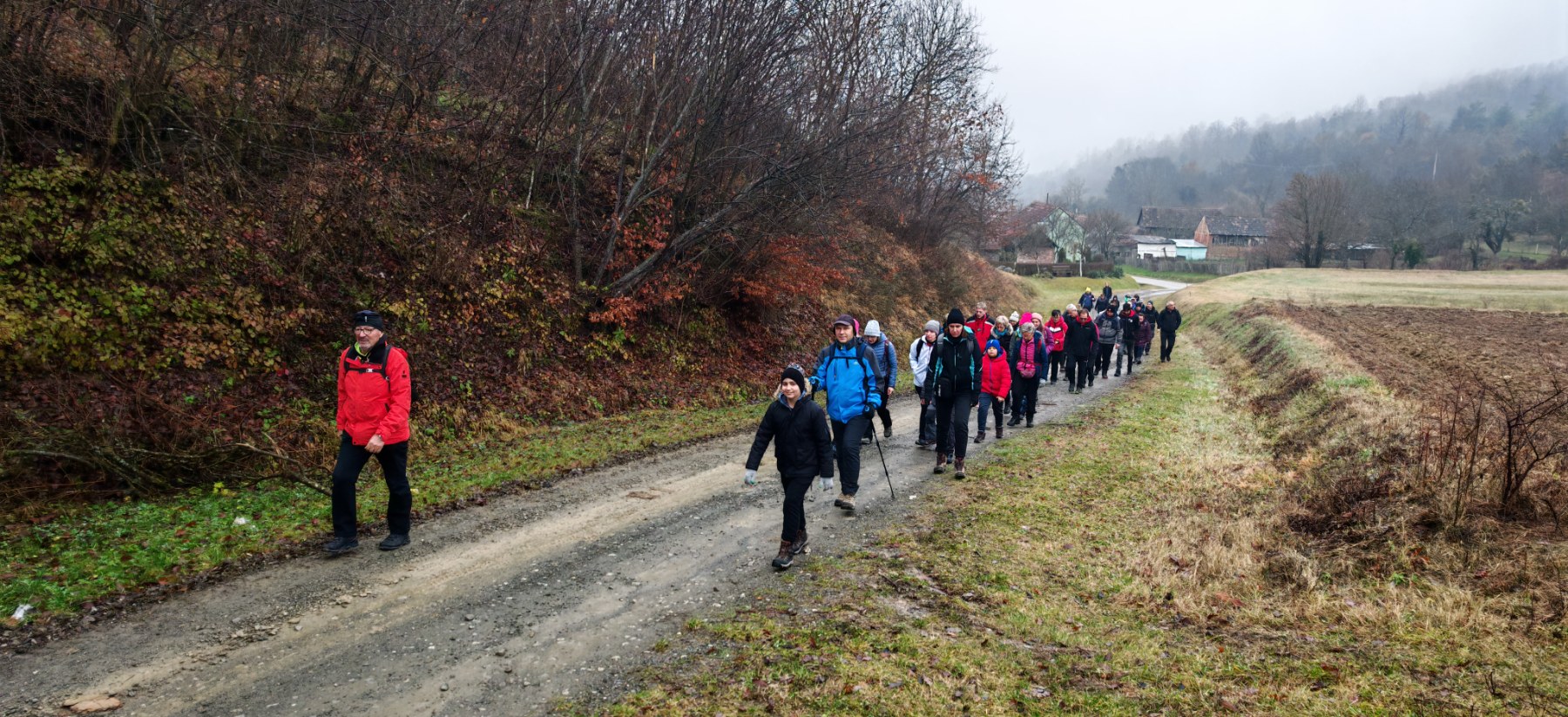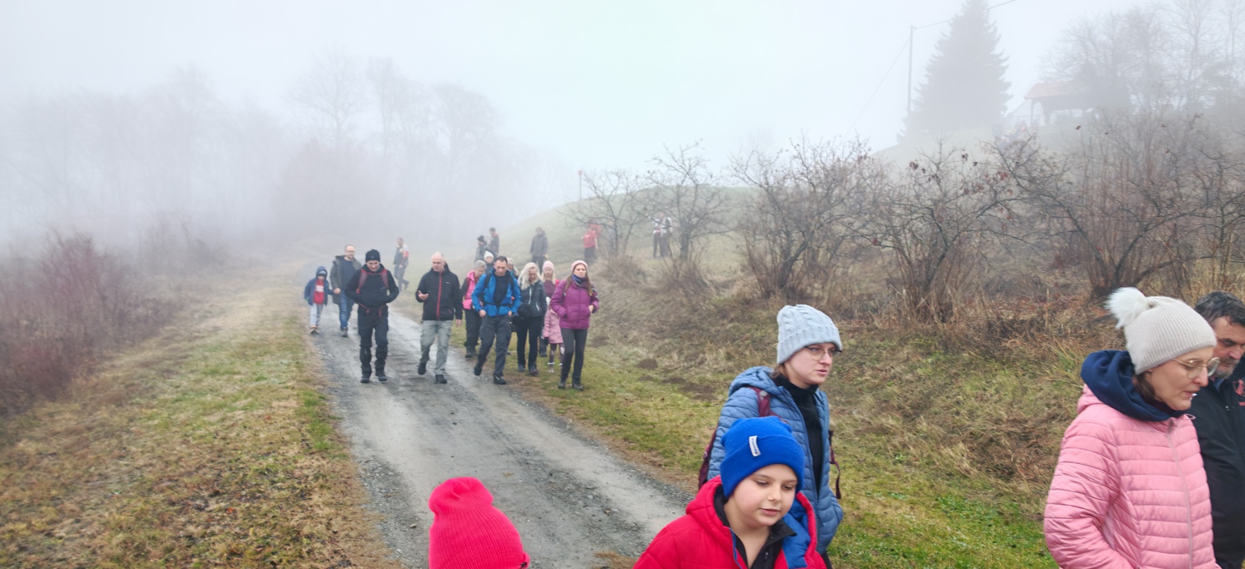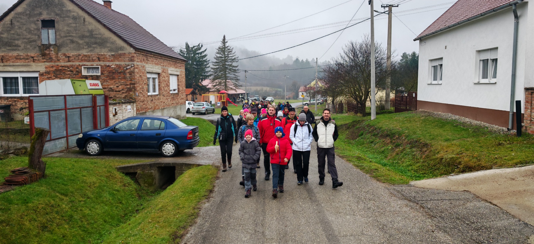 Domaćini su dočekali uzvanike toplim čajem, kuhanim vinom i rakijom te slasnim domaćim kolačima. Nakon okrijepe i zagrijavanja Danijela Jozić Prskalo ispred udruge Stup pozvala je sve na zajedničko fotografiranje, dok je Višeslav Turković, licencirani vodič HPS-a i predsjednik HPD Gojzerica Požega, pozvao sve na tradicionalnu planinarsku šetnju. Staza je vodila prema seoskom groblju udaljenom od naselja, gdje se nalazi crkva Sv. Martina i kontrolna točka Slavonskog planinarskog puta.