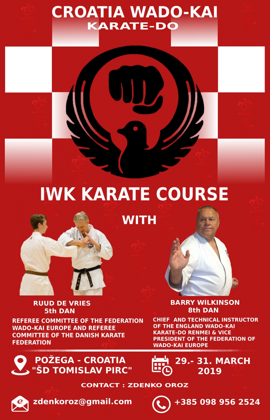 Karate do klub Požega od 29.- 31. ožujka 2019. u SD Tomislav Pirc organizira Međunarodni Wado kai seminar