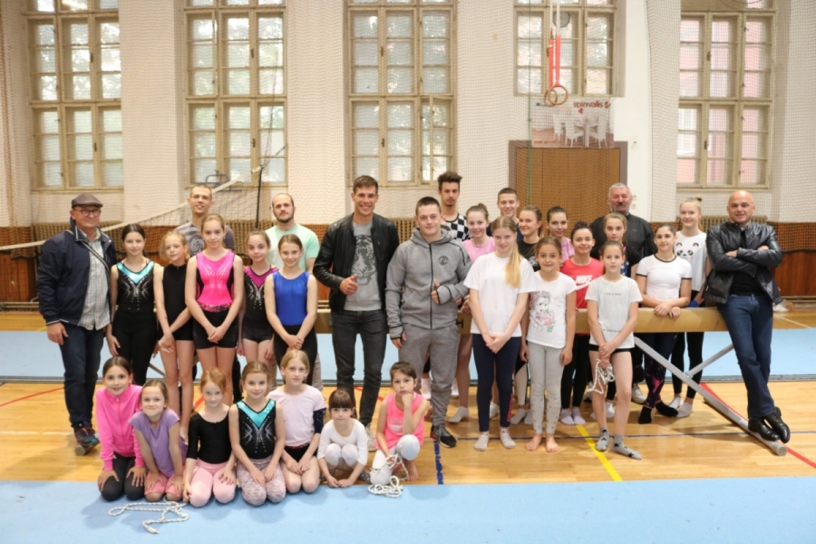 Požeške gimnastičare na treningu posjetili gimnastičar Tin Srbić, viceprvak Europe i jedriličar Šime Fantela, olimpijski, svjetski i europski prvak