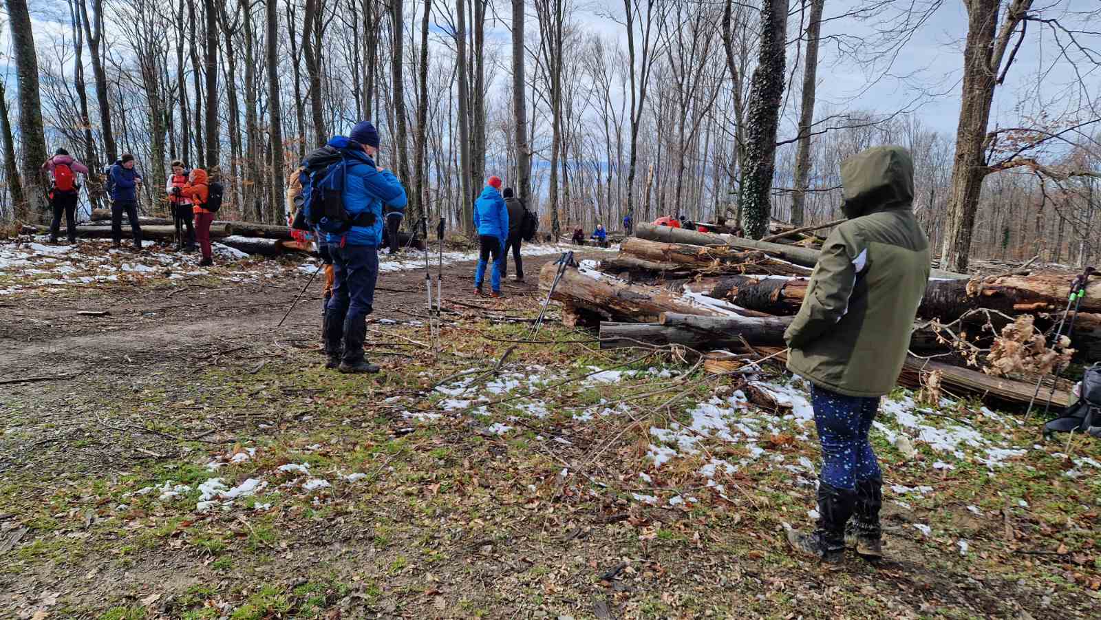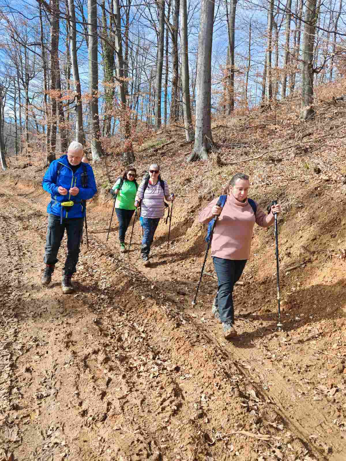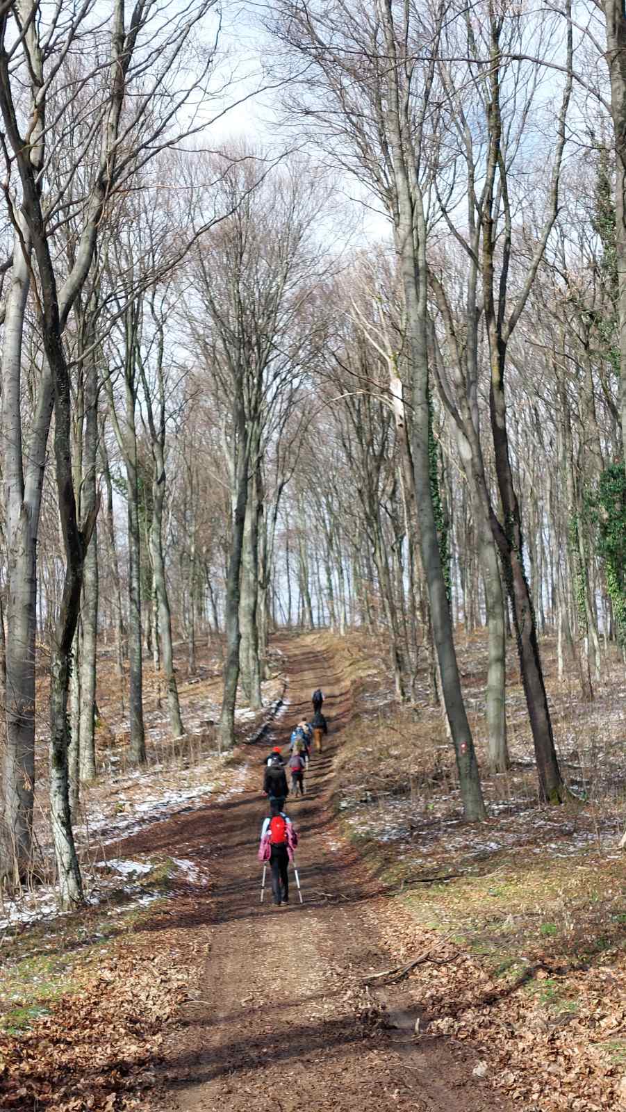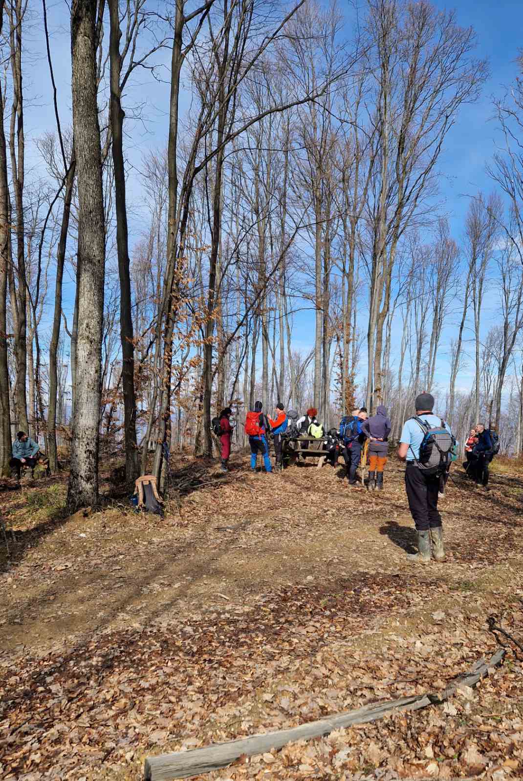 Nakon što smo konsolidirali redove od 32 hodačkih entuzijasta (bilo nas je s više strana; šestero iz Podružnice Oriovac, troje gostiju iz PD Dilj Slavonski Brod te svi ostali iz matične i brojne baze Gojzerice, uz napomenu da su pola bili polaznici planinarske škole) te nakon uvodnog i obveznog vodičkoga govora krenuli smo put Slavonake planinarske obilaznice u smjeru zapada kako bi prehodali u komadu Požešku i Babju Goru. Samim ranojutarnjim startom pratilo nas je jedno od posljednjih ovosezonskih idiličnih zimskih jutara, onakvo divno jutro kakvo mi planinari volimo da nas prati uz našu dinamičnu šetnju ka očekivanim vrhovima. Nakon višetjednih učestalih padavina gazili smo vrlo blatnjavo tlo, što nije predstavljalo problem vrlo dobro opremljenim hodačima. Kako smo se penjali ka prvom vrhu Maksimov Hrast tako smo bilježili tanki sloj jučer napadaloga snijega koji se zadnjim naporima opirao izlazećem suncu. Hodajući tako hrptom bacali smo poglede kroz ćelave krošnje stabala ka Papuku, gdje su se nazirali njegovi snježni vrhovi duž cijeloga masiva ka Krndiji. Ogledavajući se na južnu stranu vidjeli smo uglavnom kroz nizinsku maglu dio Brodske-posavine te brojne zasnježene planinske vrhove diljem prekosavlja.”