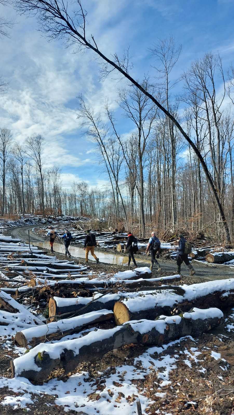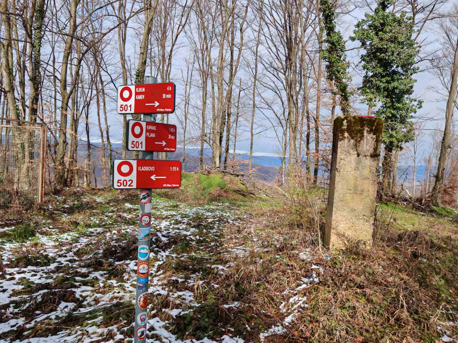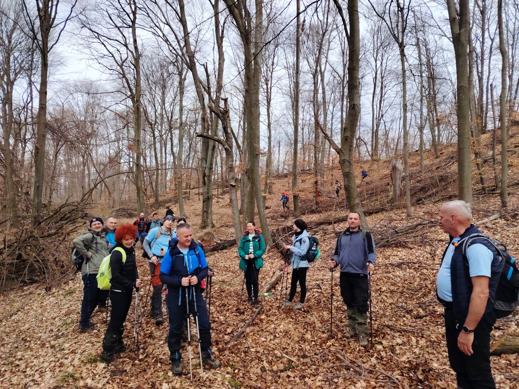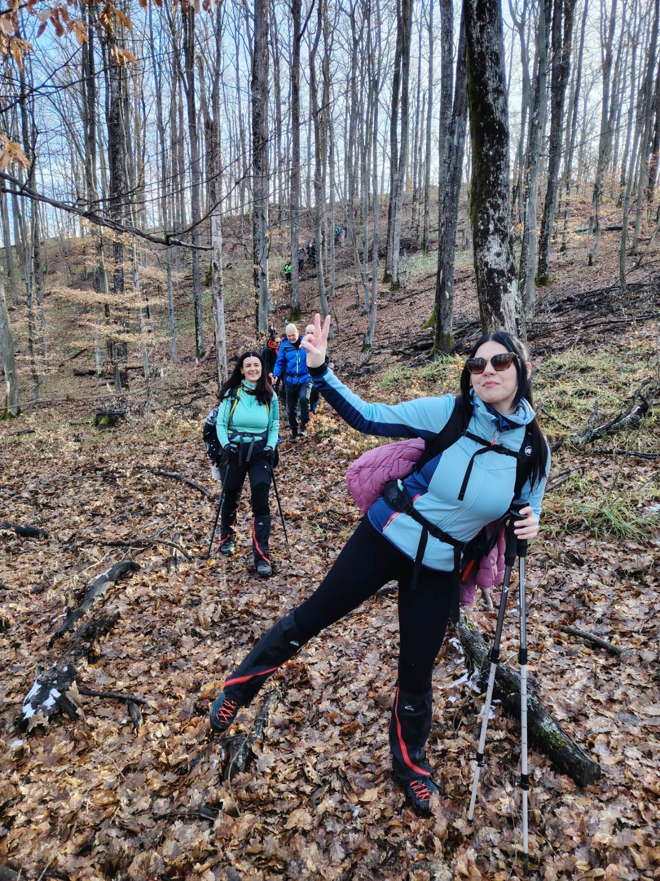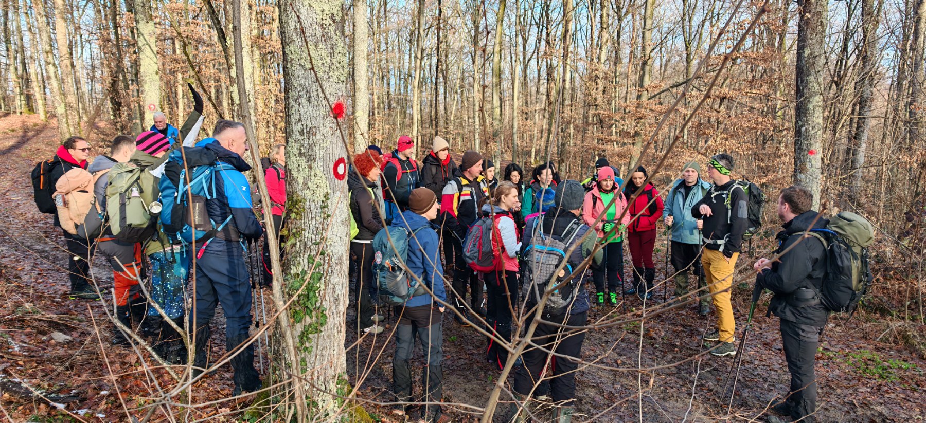 Nakon što smo konsolidirali redove od 32 hodačkih entuzijasta (bilo nas je s više strana; šestero iz Podružnice Oriovac, troje gostiju iz PD Dilj Slavonski Brod te svi ostali iz matične i brojne baze Gojzerice, uz napomenu da su pola bili polaznici planinarske škole) te nakon uvodnog i obveznog vodičkoga govora krenuli smo put Slavonake planinarske obilaznice u smjeru zapada kako bi prehodali u komadu Požešku i Babju Goru. Samim ranojutarnjim startom pratilo nas je jedno od posljednjih ovosezonskih idiličnih zimskih jutara, onakvo divno jutro kakvo mi planinari volimo da nas prati uz našu dinamičnu šetnju ka očekivanim vrhovima. Nakon višetjednih učestalih padavina gazili smo vrlo blatnjavo tlo, što nije predstavljalo problem vrlo dobro opremljenim hodačima. Kako smo se penjali ka prvom vrhu Maksimov Hrast tako smo bilježili tanki sloj jučer napadaloga snijega koji se zadnjim naporima opirao izlazećem suncu. Hodajući tako hrptom bacali smo poglede kroz ćelave krošnje stabala ka Papuku, gdje su se nazirali njegovi snježni vrhovi duž cijeloga masiva ka Krndiji. Ogledavajući se na južnu stranu vidjeli smo uglavnom kroz nizinsku maglu dio Brodske-posavine te brojne zasnježene planinske vrhove diljem prekosavlja.”