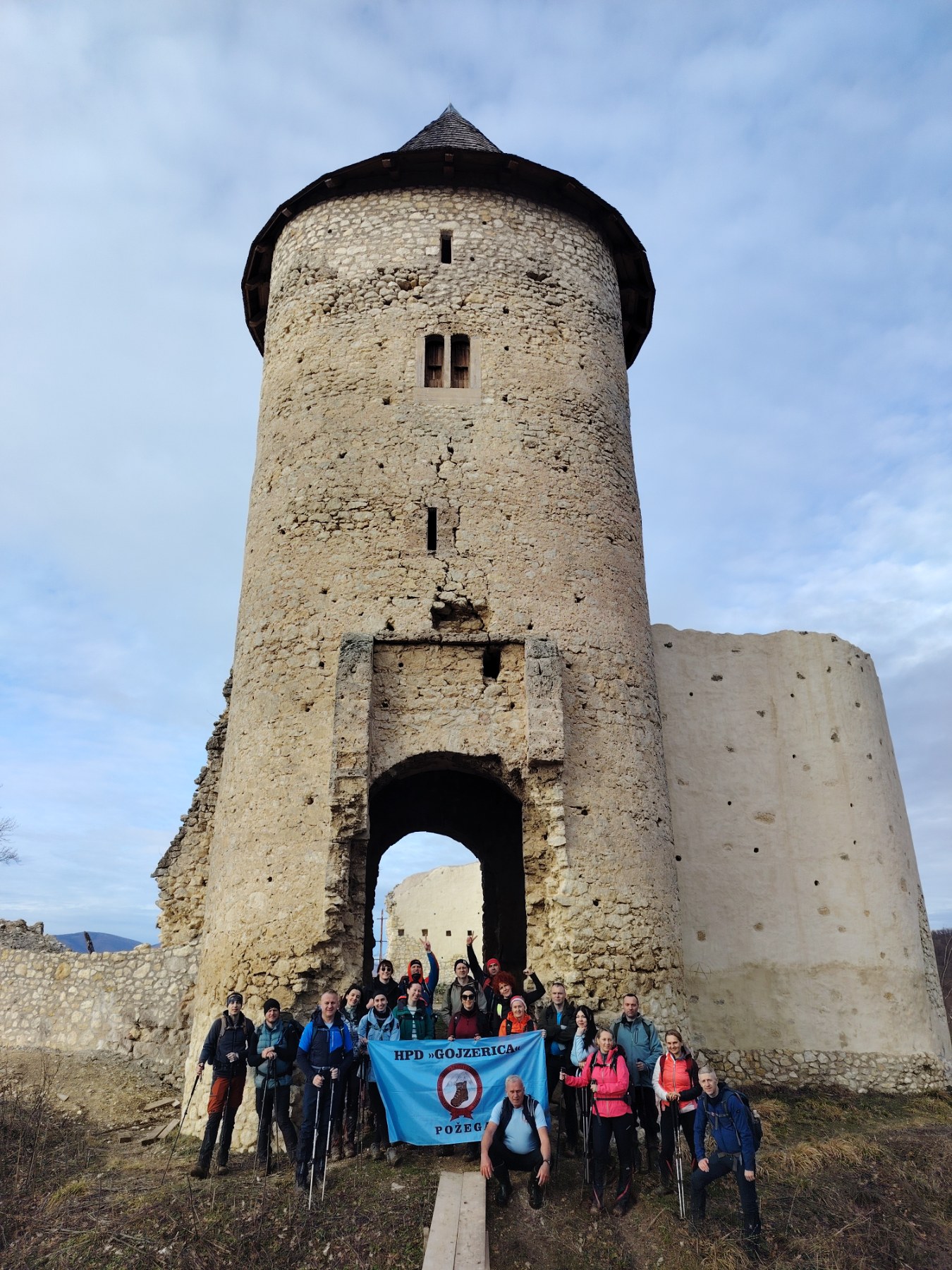 Bero dalje nastavlja nizati svoje doživljaje: ”21 planinar nastavlja smjelo i oportuno strmoglavim spustom pa opetovanim usponom ka Kapavcu, gdje smo ustanovili da je glavni i naporniji dio ture bio iza nas. Slijedili su mahom reljefno lakši, no vegetacijom teže prohodni tereni, tako da staza nije bila nimalo sumorna već naprotiv zanimljivo iskustvo u ovom malom i lijepom, a za većinu do sada neotkrivenom djeliću Slavonij. Kako se sunce polagano spuštalo s vrha obzora tako smo i mi smanjivali nadmorsku visinu stigavši do danas nam posljednjeg vrha Kula Gračanica, na kojemu je ista i smještena još od 16 stoljeća. Tu smo se s guštom odmorili na zidinama te slikali ispred njih, ustvrdivši da je naših 25 km prehodanih u miru i izobilju prirode za nekih 7-8 sati nije napor te smo se zadovoljni spustili strmo dolje niz posljednju padinu i sa zadovoljastvom ishodali pristupnom cestom do Baćin Dola, tako kompletiravši kondicijski zahtjevnu dionicu SPP-a. Tu nas je dočekalo šest automobila gdje su nas naše drage kolege pokupile i prevezle natrag do automobila kod Škrabutnika gdje je ova lijepa priča jutros i započela.”