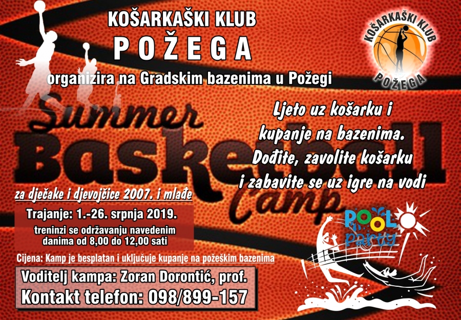 Košarkaški klub Požega organizira besplatni ljetni košarkaški kamp za djevojčice i dječake rođene 2007. i mlađe