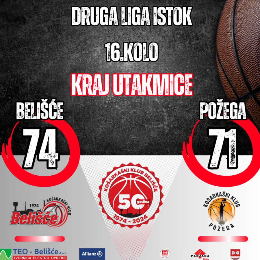 Košarkaši Požege u 16. kolu 2. Hrvatske košarkaške lige - Istok poraženi na gostovanju kod Belišća
