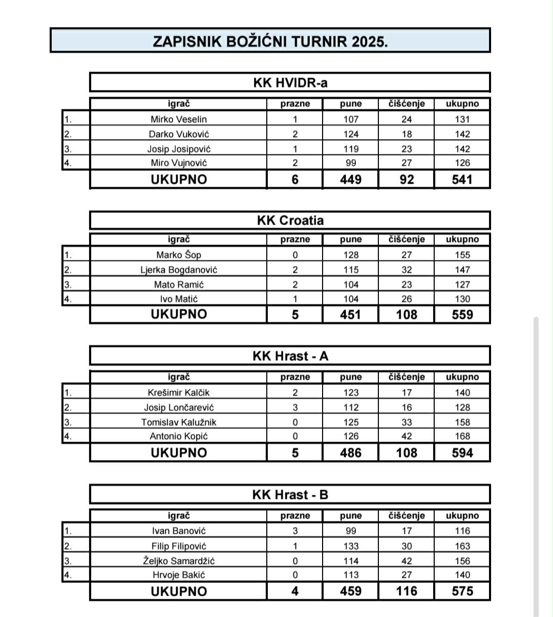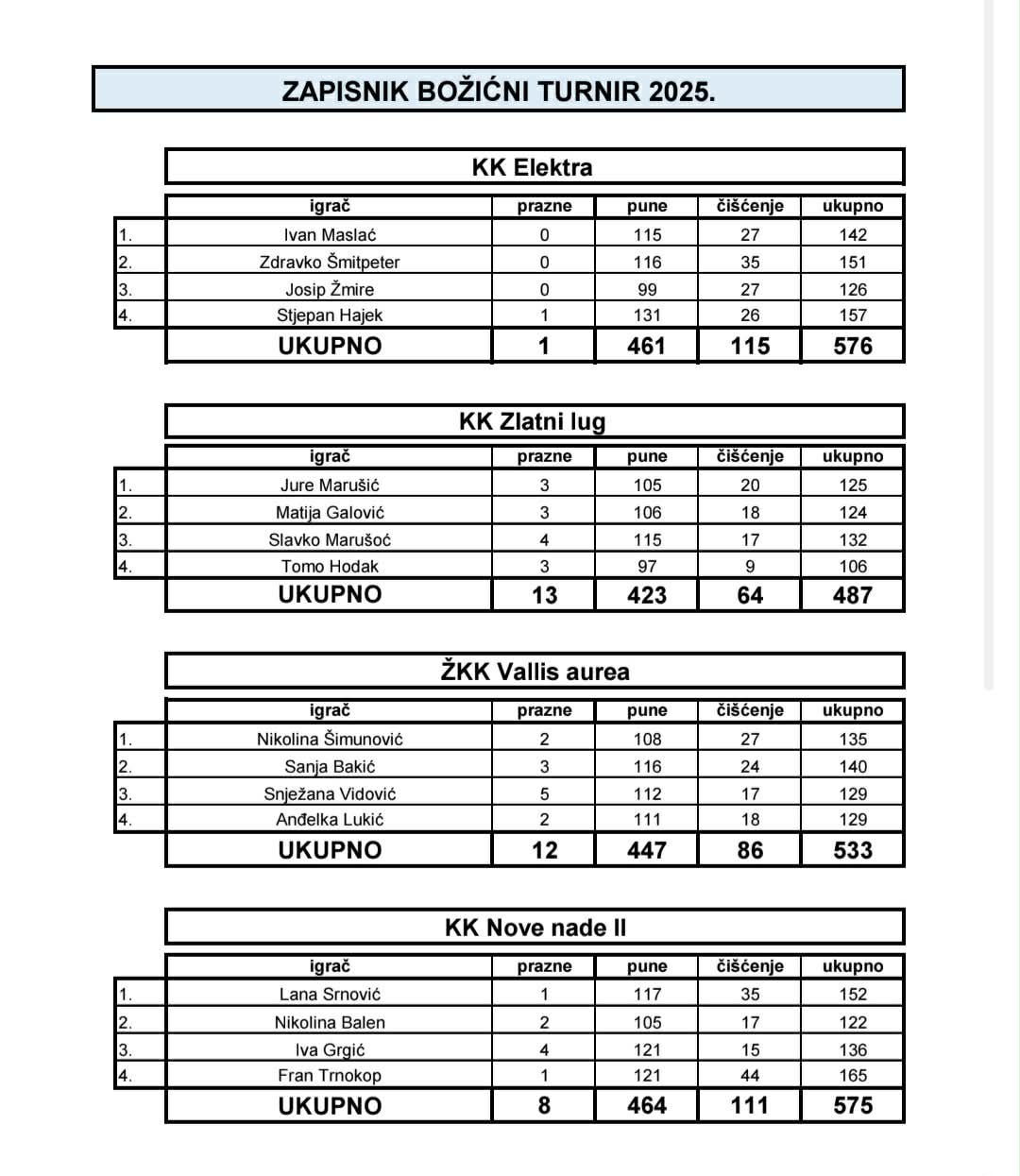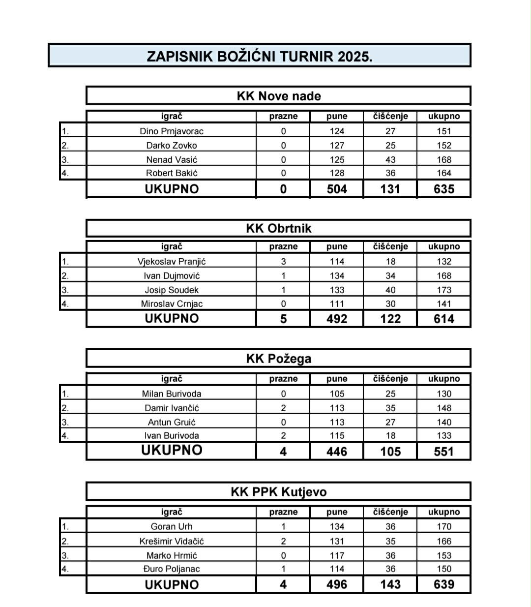 POŽEGA – Na Gradskoj kuglani je danas održan (subota, 20. 12. 2025.) tradicionalni Božićni turnir u organizaciji Kuglačkog saveza Požeško – slavonske županije.