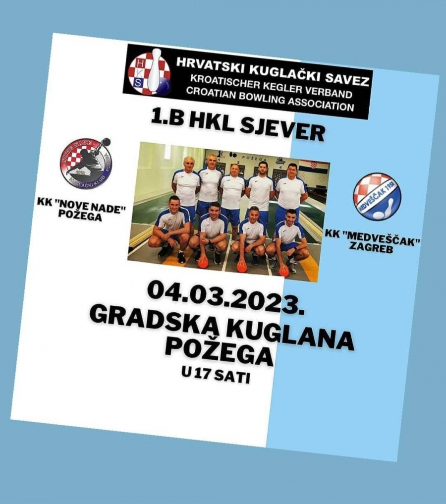 U subotu, 04. ožujka u 17,00 sati na Gradskoj kuglani igra se derbi za prvaka 1. B HKL Sjever : Nove nade - Medveščak 1958 (Zagreb)