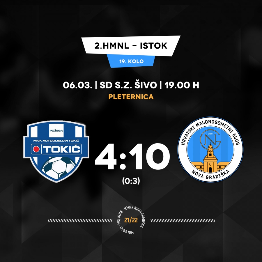 Malonogometaši Autodijelova Tokić poraženi od HMNK Nova Gradiška u 19. kolu 2. HMNL - Istok