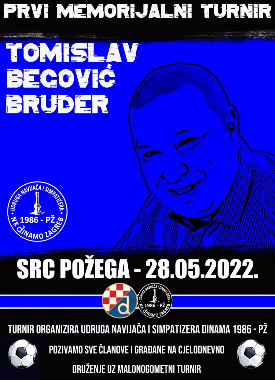 1. Memorijalni malonogometni turnir "Tomislav Begović Bruder" održat će se u subotu, 28. 05. na Sportsko - rekreacijskom centru u Požegi