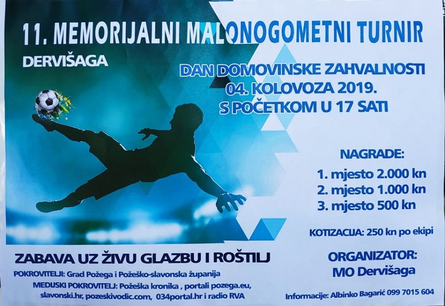 U nedjelju, 04. 08. 2019. u Dervišagi će se održati 11. Memorijalni malonogometni turnir za poginule i preminule branitelje