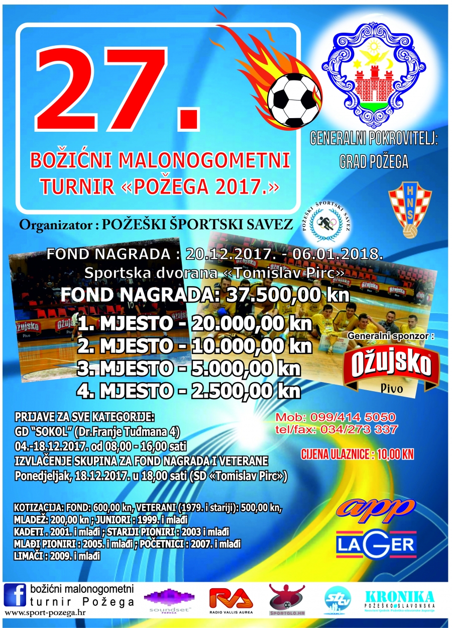 Branitelj naslova Caffe bar Samson u srijedu, 20. 12. 2017. s početkom u 18,40 sati otvara 27. BMNT "Požega 2017"