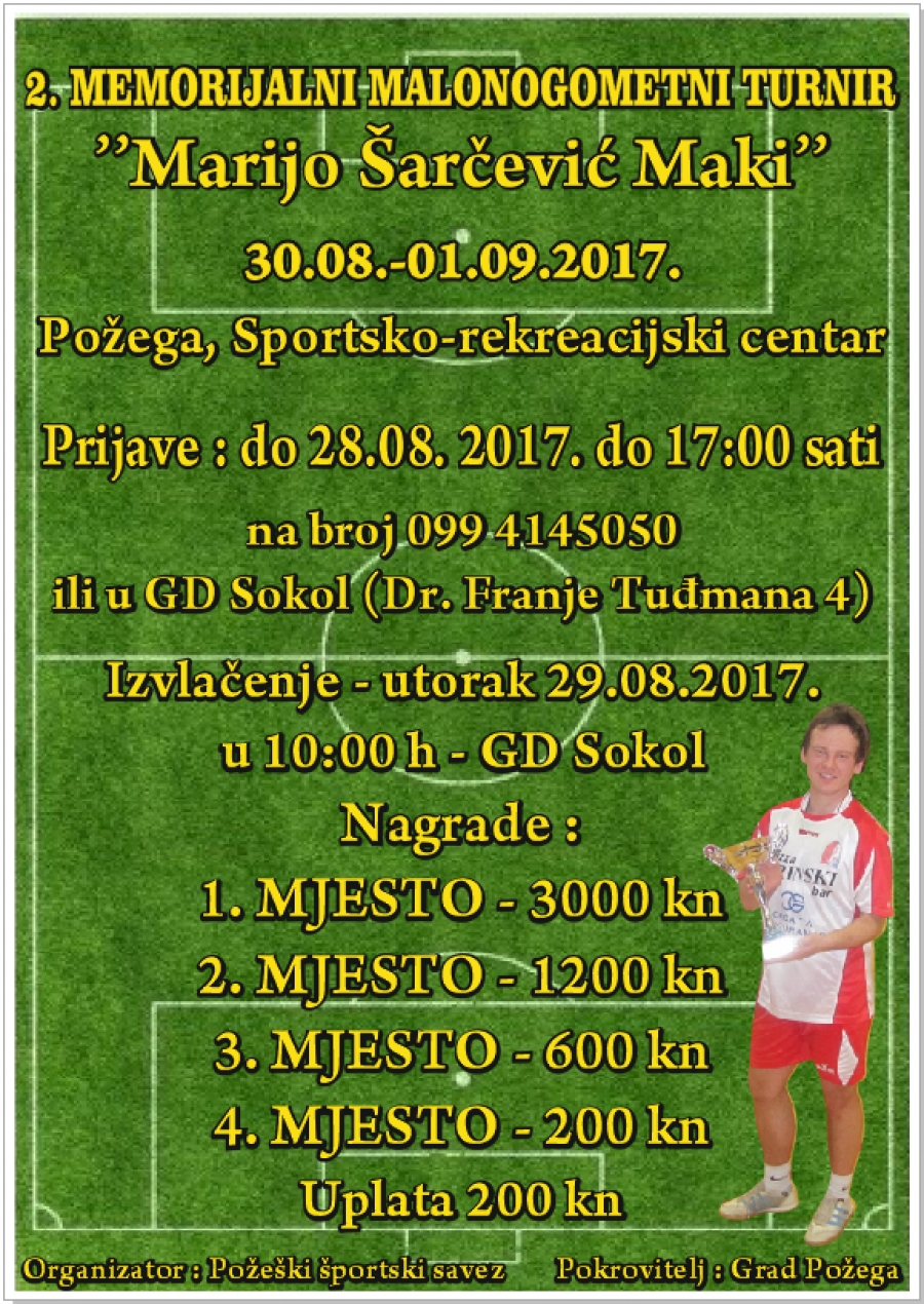 2. Memorijalni malonogometni turnir "Marijo Šarčević -Maki " održat će se od 29. 08. - 01. 09. 2017.