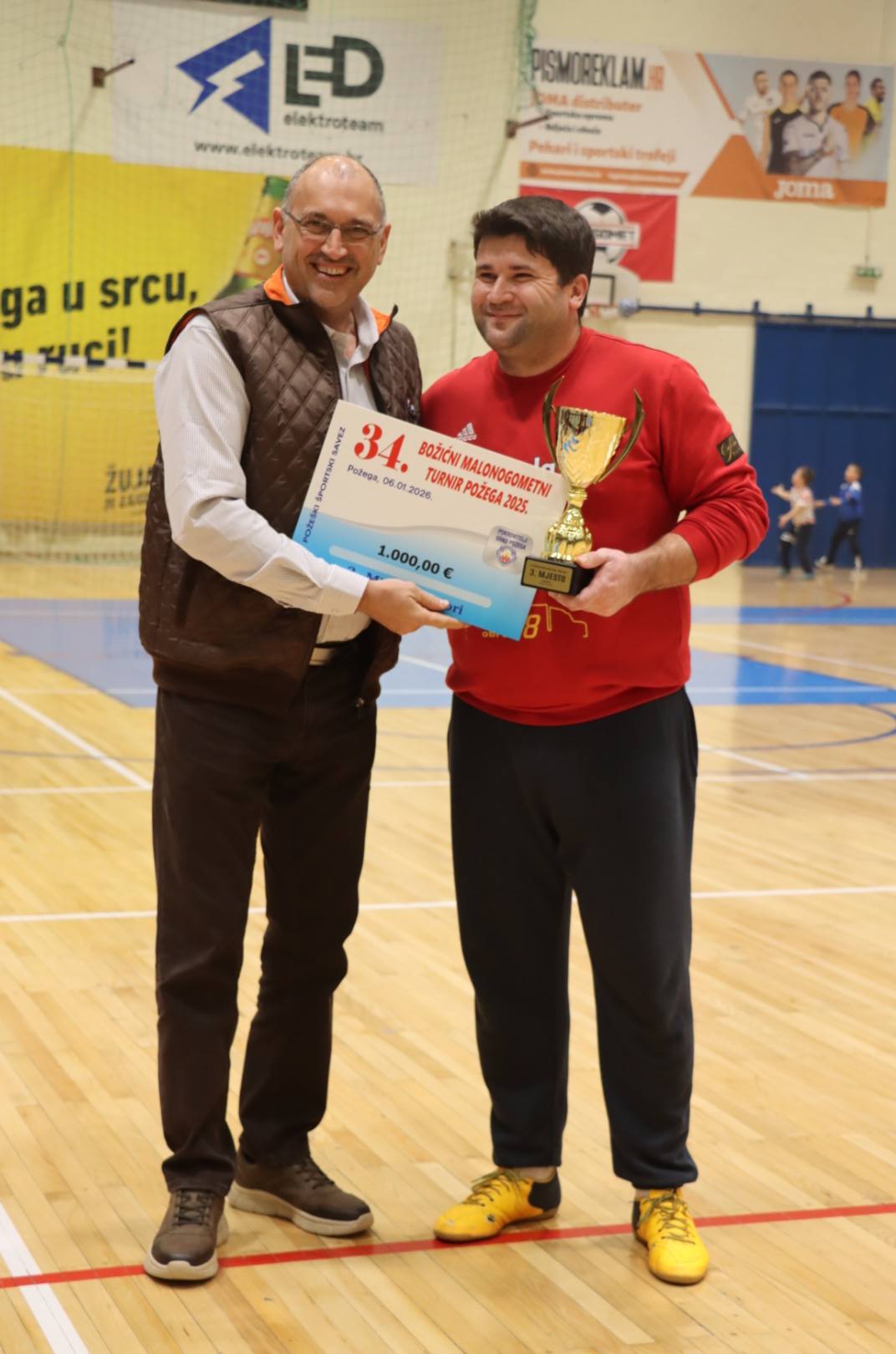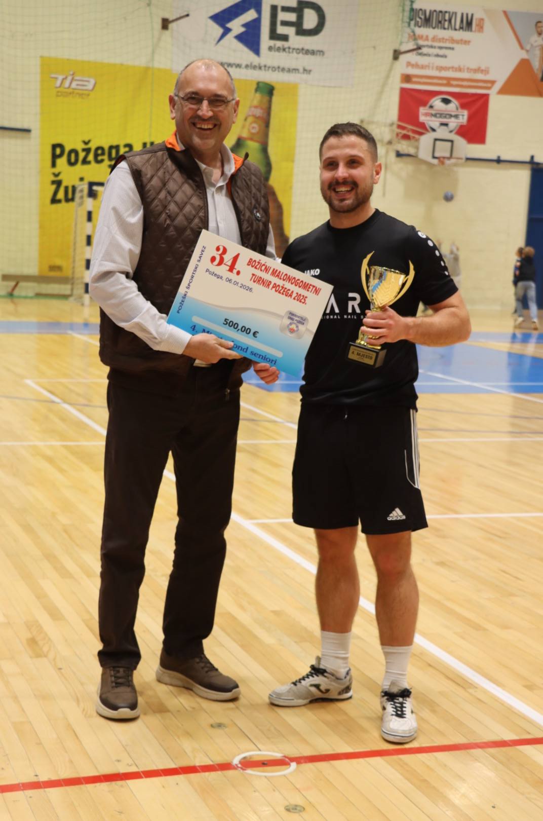 Pehare i nagrade za 3. i 4. mjesto uručio je predsjednik Požeškog športskog saveza i predsjednik Organizacijskog odbora turnira Nino Abramović.