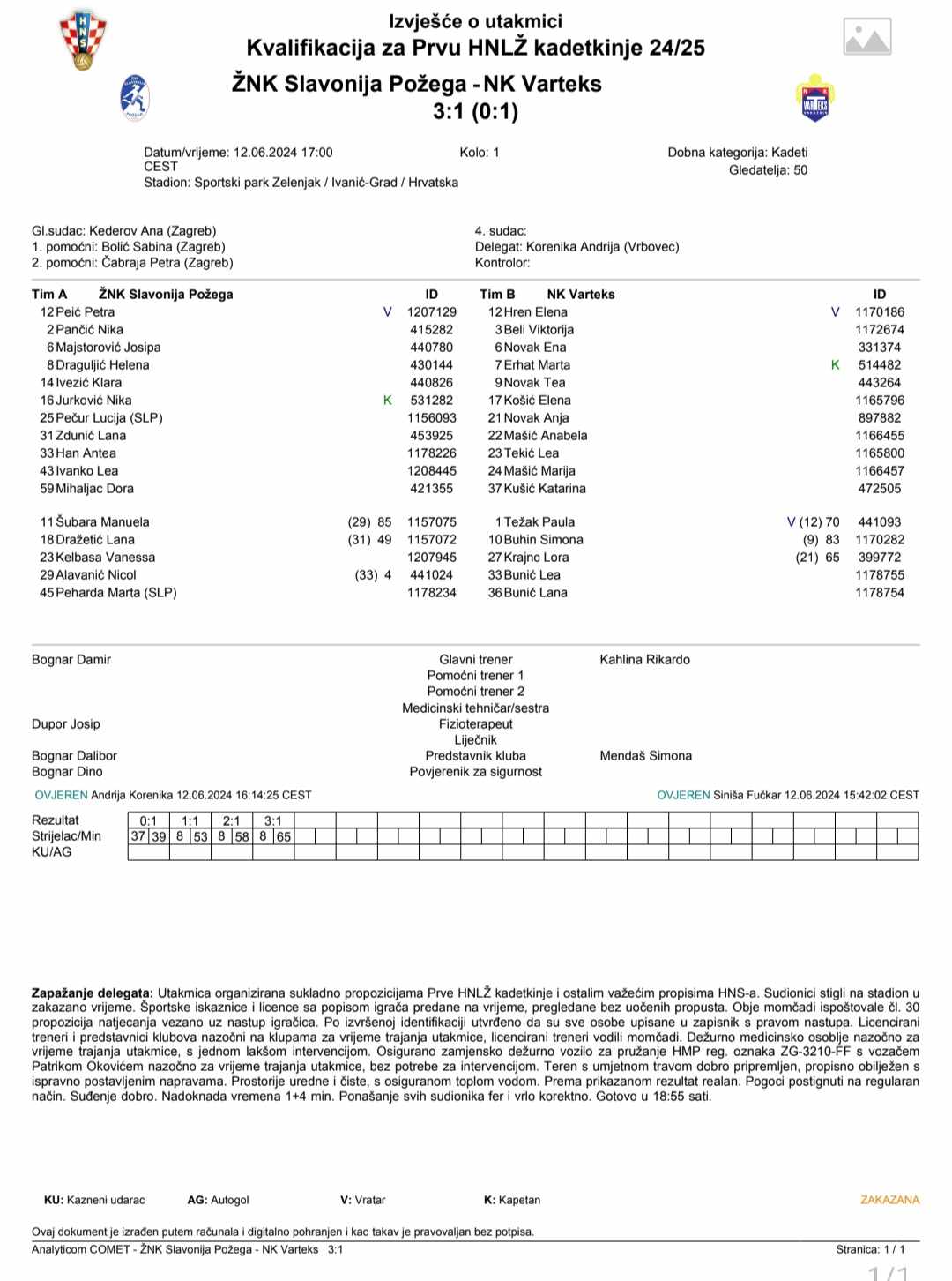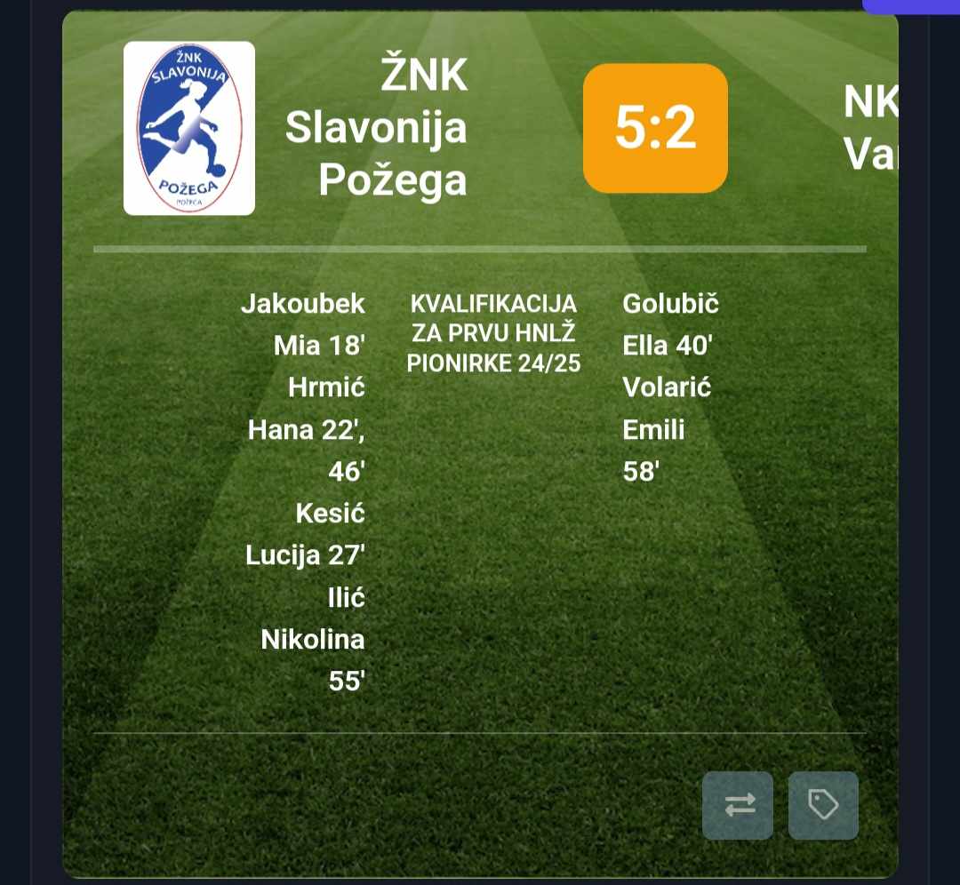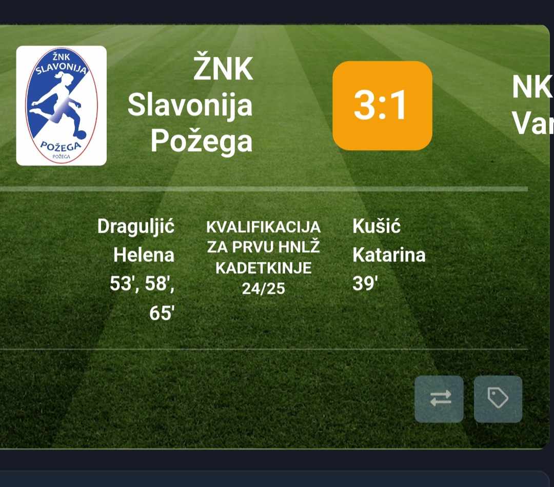 Požeškim nogometašicama novi protivnik u pohodu na 1 ligu mladih je HNK Gorica koja je sezonu završila na 10. mjestu 1. HNLŽ Pionirke-kadetkinje, a te utakmice igrat će se u nedjelju, 16. lipnja 2024. na neutralnom terenu u Kutini. U 17,00 sati igrat će kadetkinje, a od 18,45 pionirke. Ukupni pobjednik ovih utakmica naredne sezone igrat će u prvoj ligi.