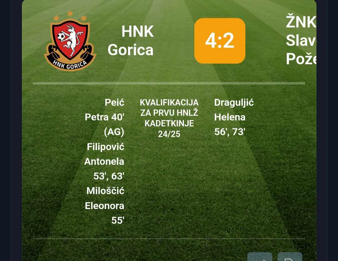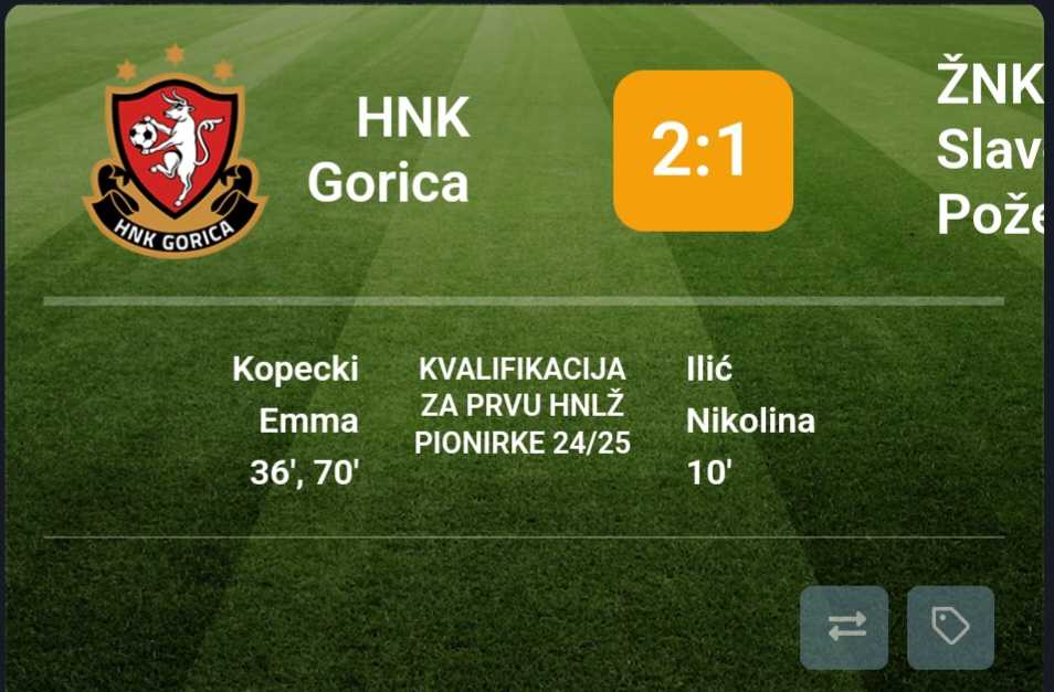 KUTINA – Kadetkinje i pionirke ŽNK Slavonija Požega jučer su u Kutini odigrale utakmice kvalifikacija za popunu 1. Hrvatske nogometne lige kadetkinja/pionirki. Nakon što su u srijedu u prvim susretima kvalifikacija požeške nogometašice bile bolje od Varteksa (Varaždin) novi protivnik im je bila HNK Gorica.