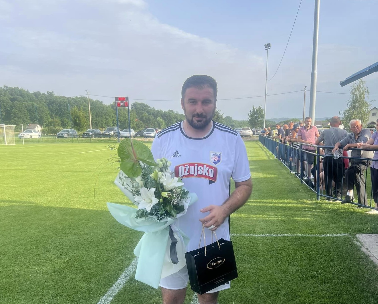 Popularni „Božo“ se od seniorskog nogometa jučer oprostio pogotkom za 4:0 u 61. minuti. Uz veliki pljesak nazočnih gledatelja na stadionu Grabovac igru je napustio u 84. minuti, a umjesto njega ušao je trener Goran Vrgoč.