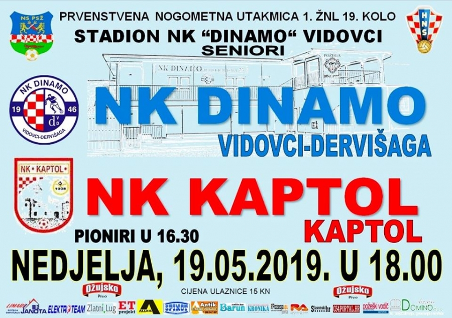 Dinamo domaćin Kaptolu, Croatia Omladincu, a Požega gostuje u Buku u 19. kolu 1. Županijske nogometne lige