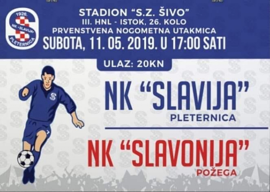 Slavonija u 26. kolu 3. HNL - Istok u subotu, 11. 05. 2019. gostuje kod Slavije u Pleternici