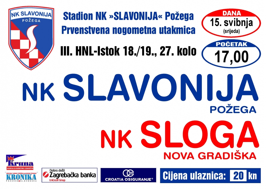 Slavonija sutra (srijeda, 15. 05. 2019.) s početkom u 17,00 sati dočekuje Slogu (Nova Gradiška)