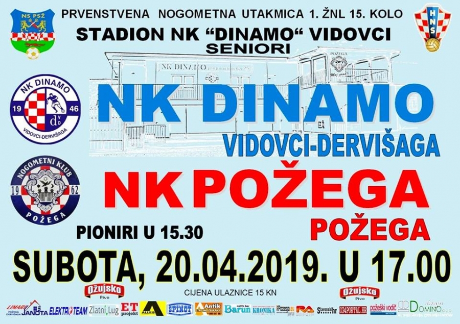 U subotu, 20. 04. u 17,00 sati u Vidovcima se igra gradski derbi 15. kola 1. ŽNL : Dinamo - Požega
