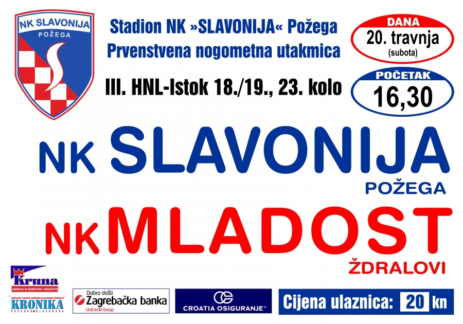 Slavonija u subotu, 20. 04. dočekuje Mladost (Ždralovi) u 23. kolu 3. HNL, a u srijedu, 24. 04. Kutjevo u polufinalu Županijskog kupa