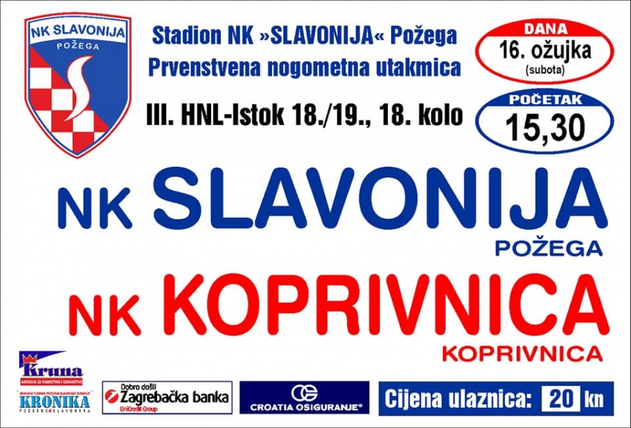 Slavonija u subotu, 16. 03. 2019. s početkom u 15,30 sati dočekuje NK Koprivnicu u 18. kolu 3. HNL - Istok