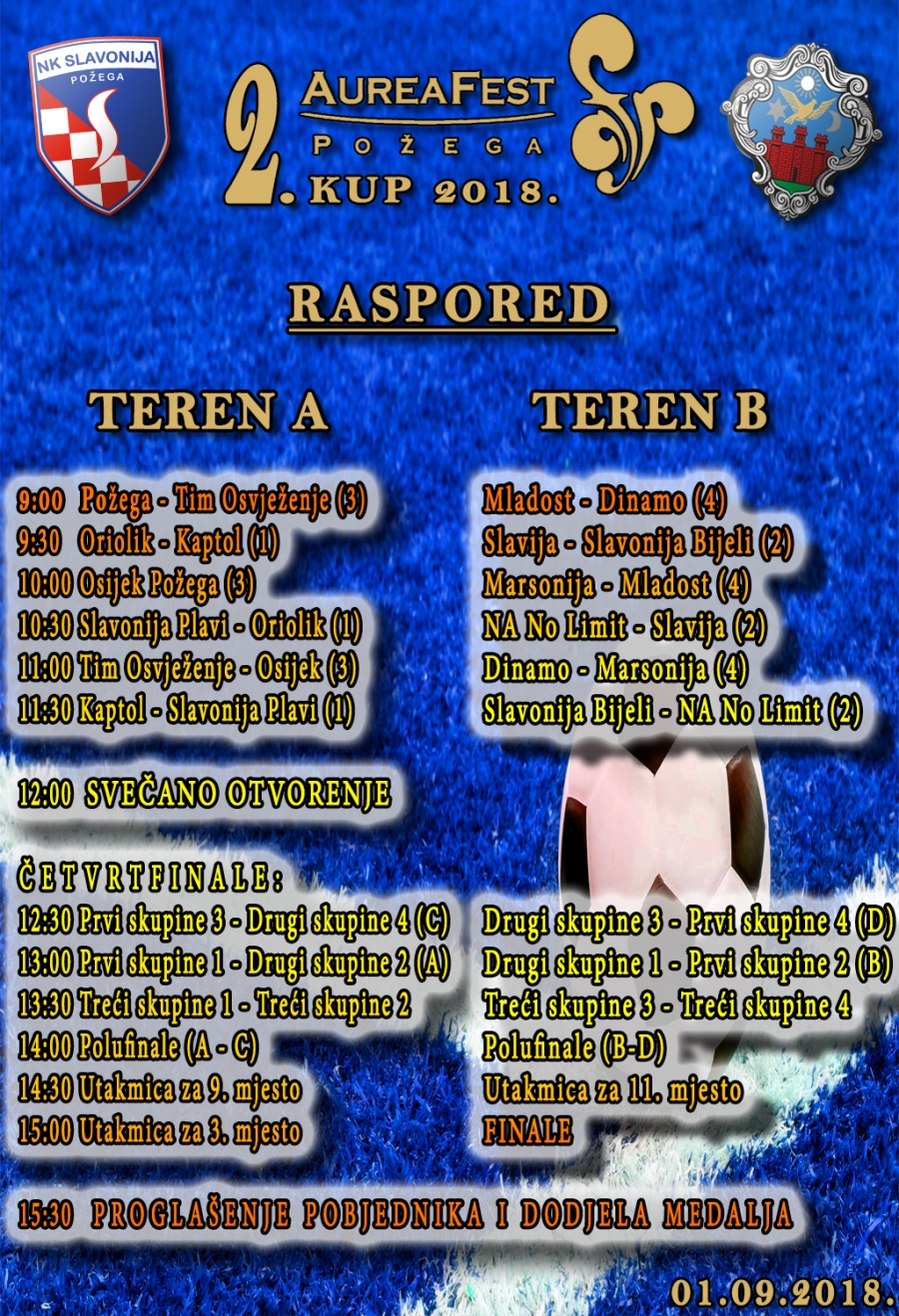 U subotu, 01. rujna 2018. na Sportsko - rekreacijskom centru će se održati 2. Nogometni turnir "Aurea Fest Kup Požega 2018"