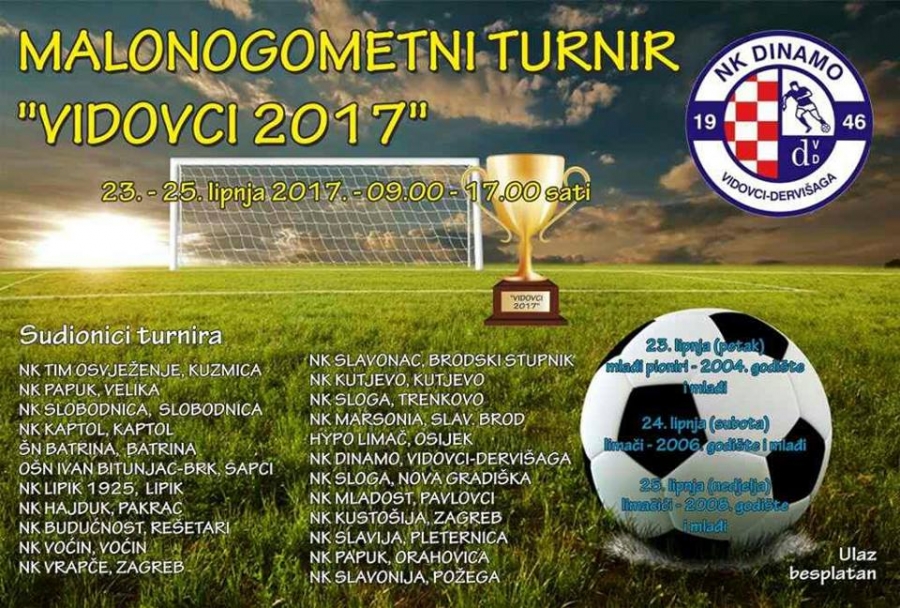NK Dinamo organizira 2. Malonogometni turnir "Vidovci 2017" za početnike, limače i limačiće od 23. do 25. 06. 2017.