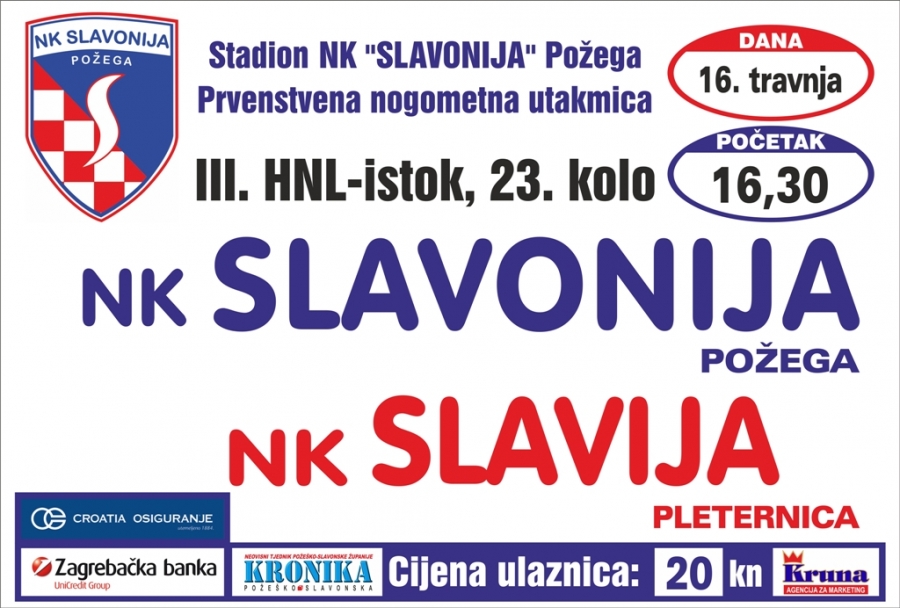 U subotu, 16. travnja županijski derbi 3. HNL - Istok : NK Slavonija - NK Slavija