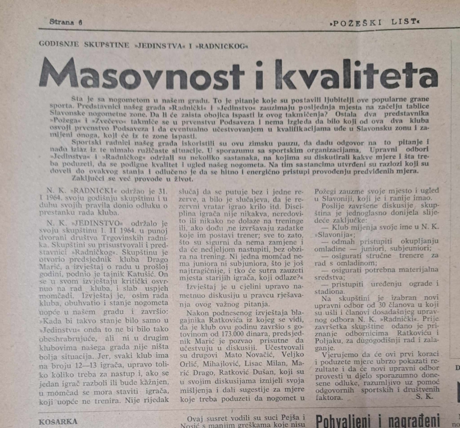 Na današnji dan prije točno 60 godina osnovan je Nogometni klub "Slavonija" Požega