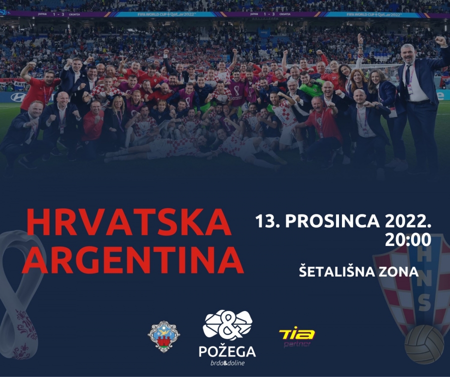 Prijenos današnje polufinalne utakmice Svjetskog nogometnog prvenstva : Hrvatska - Argentina u šetališnoj zoni u Požegi