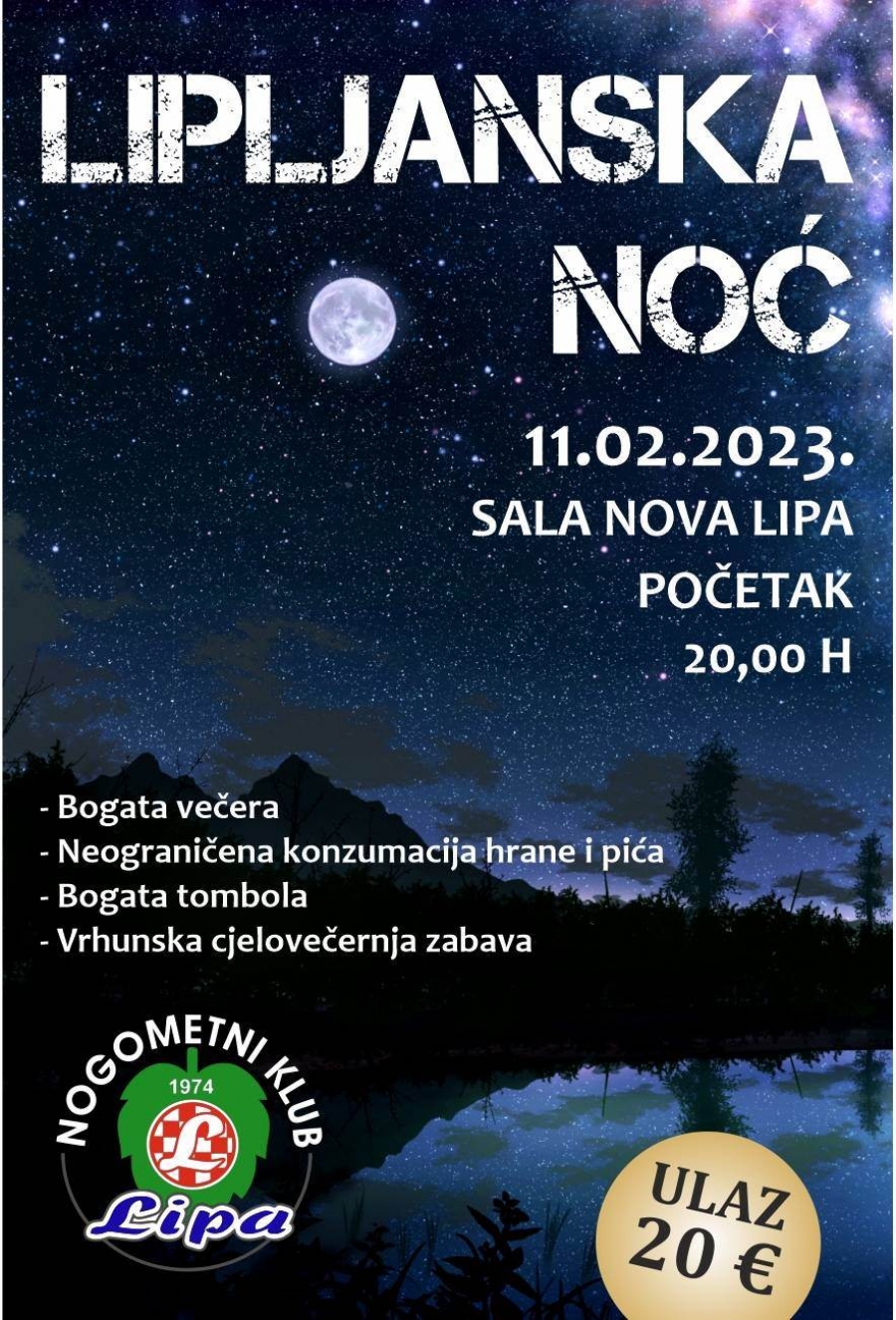 Tradicionalna, 27. "Lipljanska noć" održat će se u subotu, 11. veljače 2023. s početkom u 20,00 sati u sali u Novoj Lipi