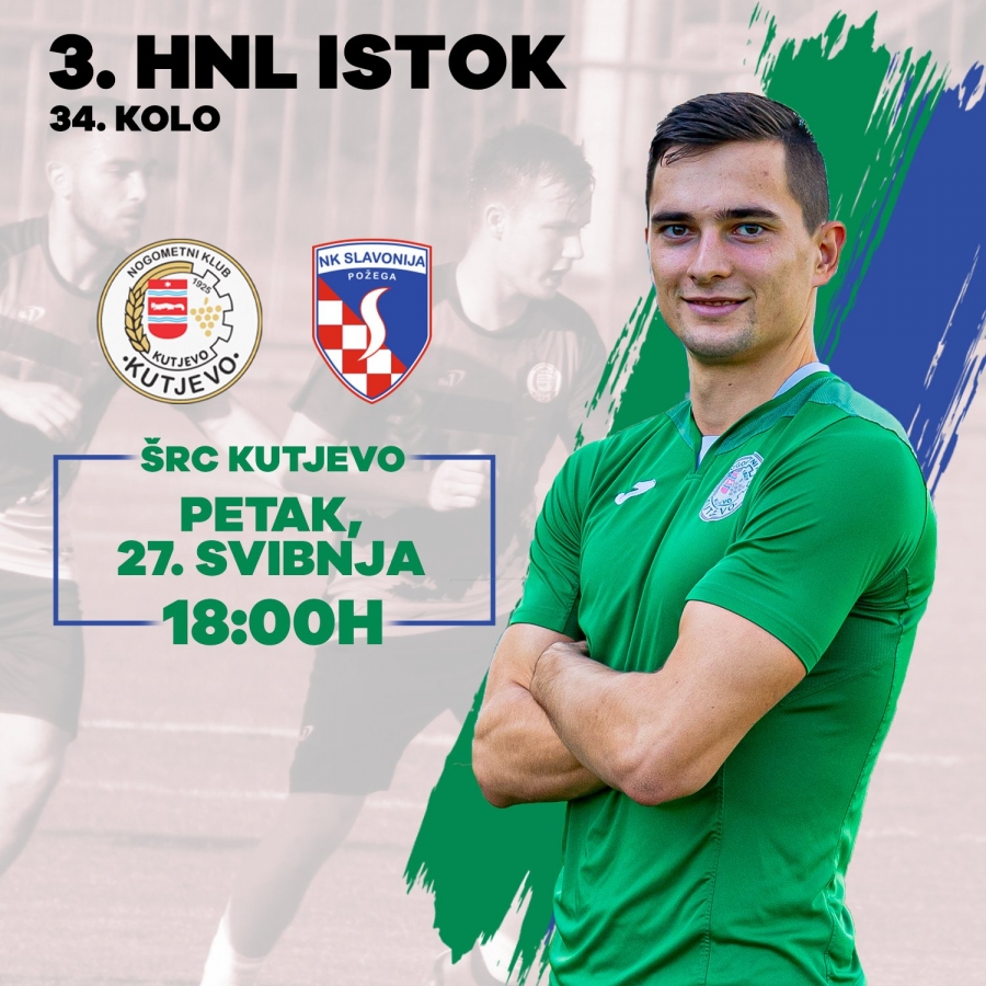 Utakmica posljednjeg, 34. kola 3. HNL - Istok : Kutjevo - Slavonija igra se u petak, 27. 05. u 18,00 sati