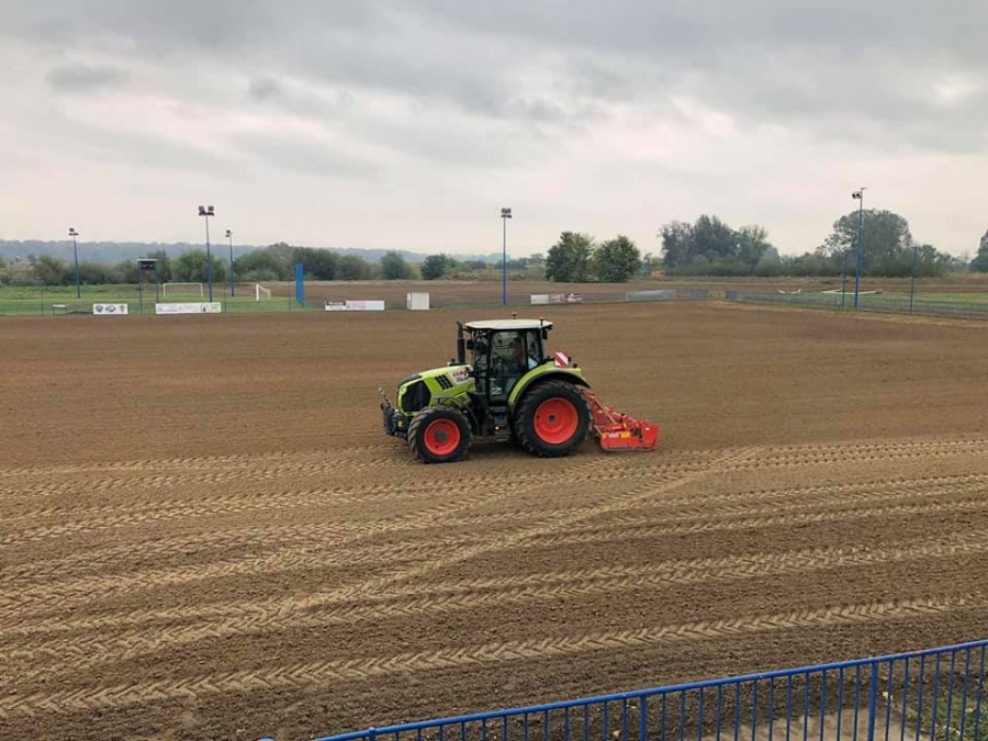 Posijana trava na igralištu Nogometnog kluba Dinamo u Vidovcima
