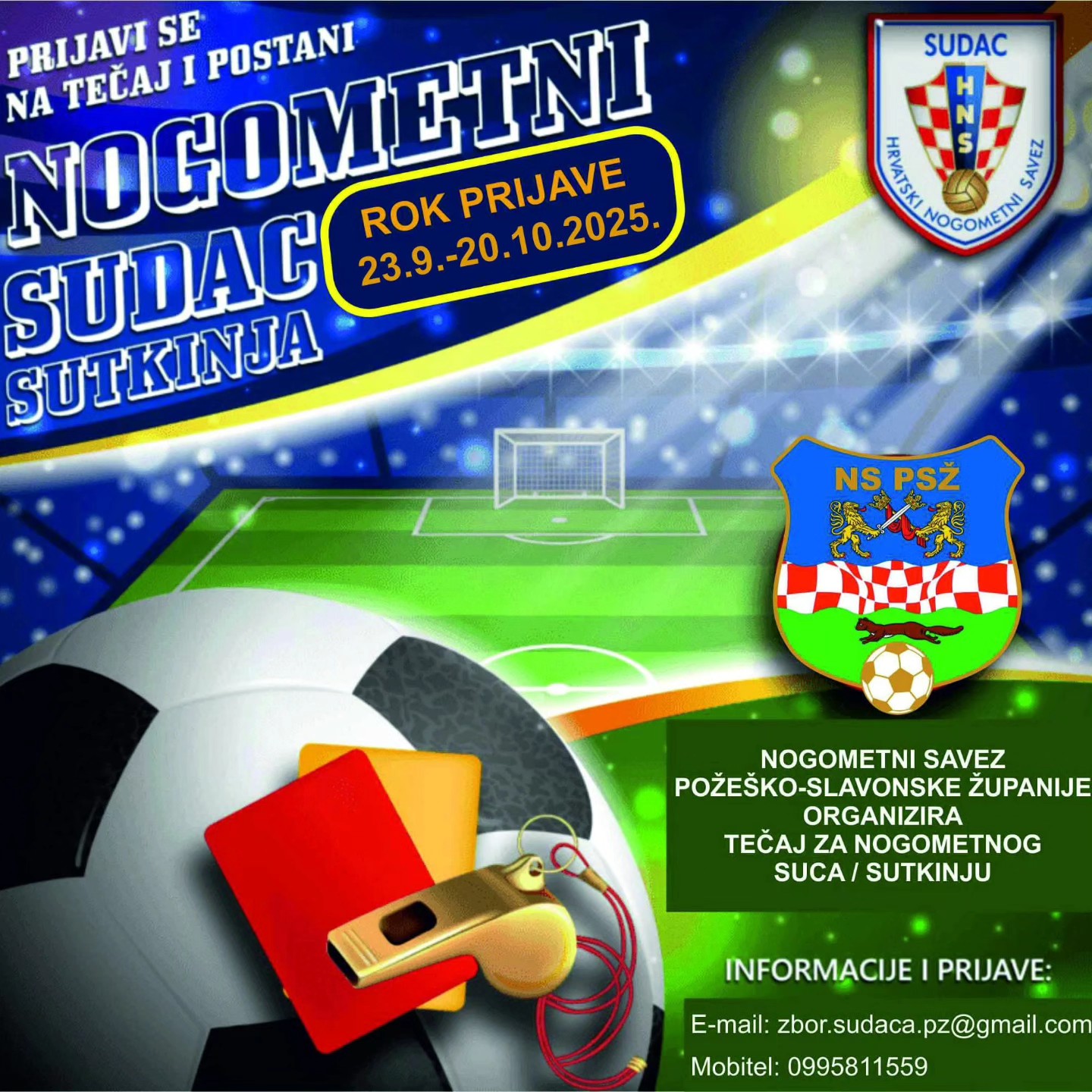 Postani nogometni sudac / sutkinja – prijavi se na tečaj Nogometnog saveza Požeško-slavonske županije