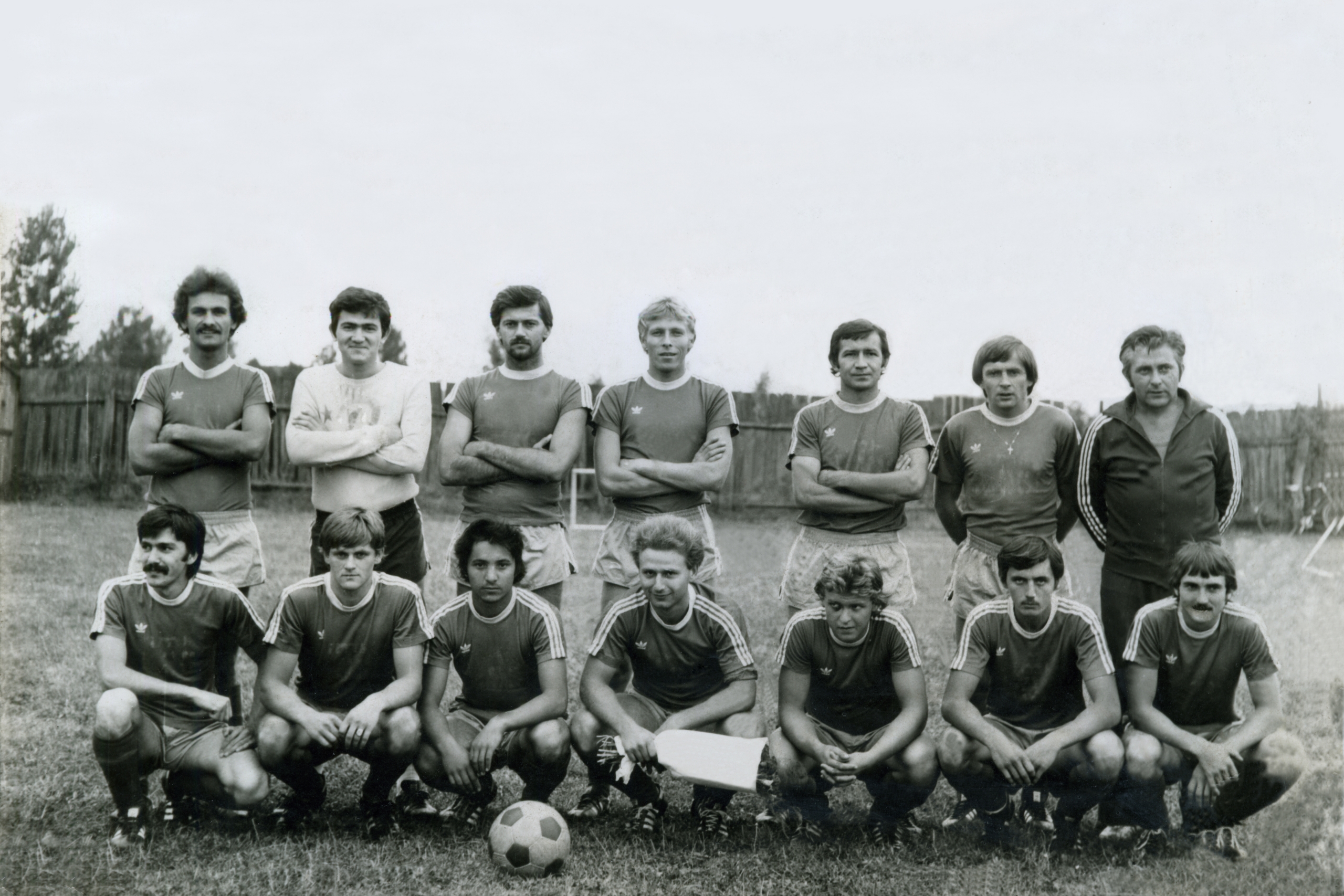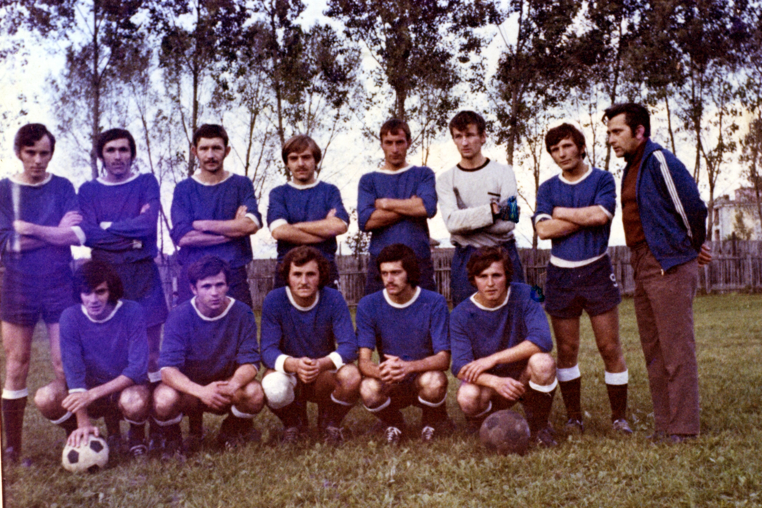 Prva povijesna fotografija igrača Nogometnog kluba Požega – gostovanje kod NK Slavija (staro igralište u Pleternici, 28. 10. 1962.)