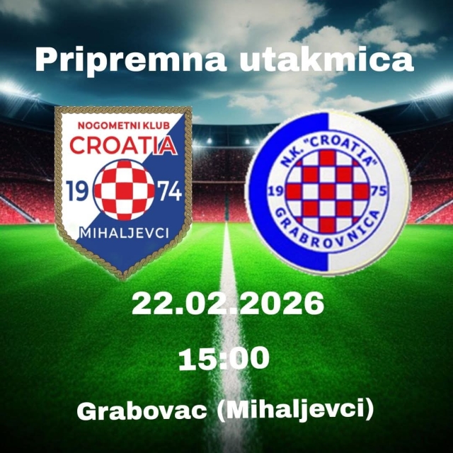 U nedjelju, 22. veljače s početkom u 15,00 sati novi protivnik igračima trenera Dalibora Banovića na njihovom terenu bit će Croatia (Grabrovnica) čija je momčad prvi dio 1. Županijske nogometne lige Virovitičko – podravske završila na 8. mjestu.