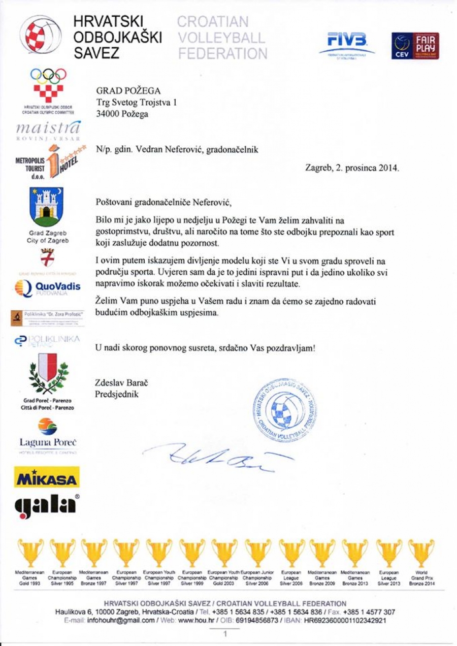 Predsjednik HOS-a Zdeslav Barač zahvalio se Požežanima na gostoprimstvu