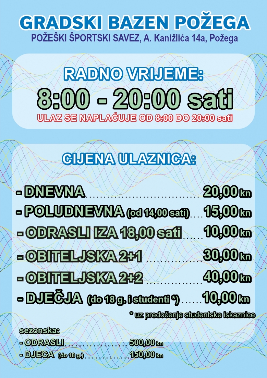 Požeški športski savez poziva Vas na Gradske bazene uz povoljne cijene ulaznica