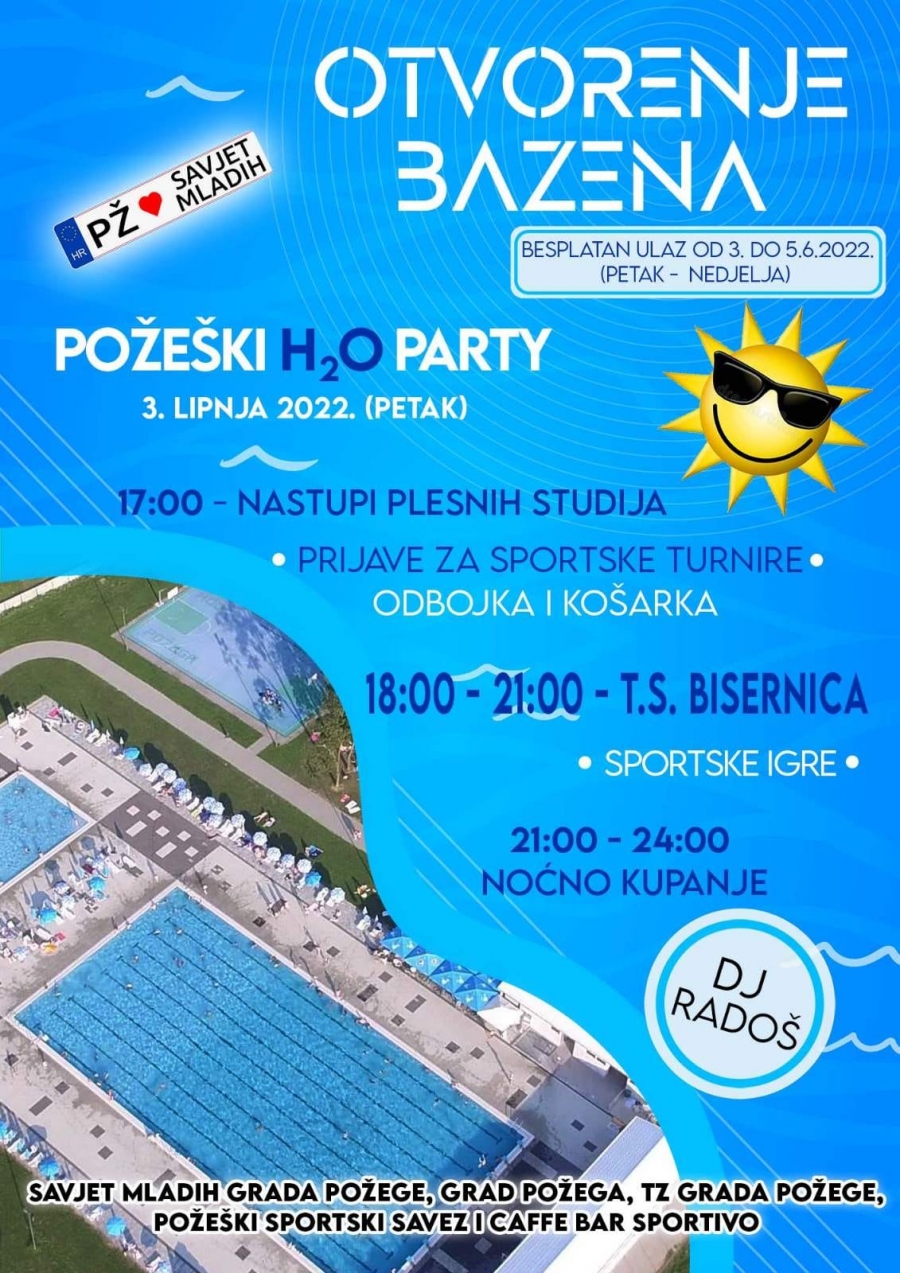 U petak, 03. lipnja u 8,00 sati s radom kreću Gradski bazeni Požega, od 17,00 sati je otvorenje uz nastup TS Bisernica