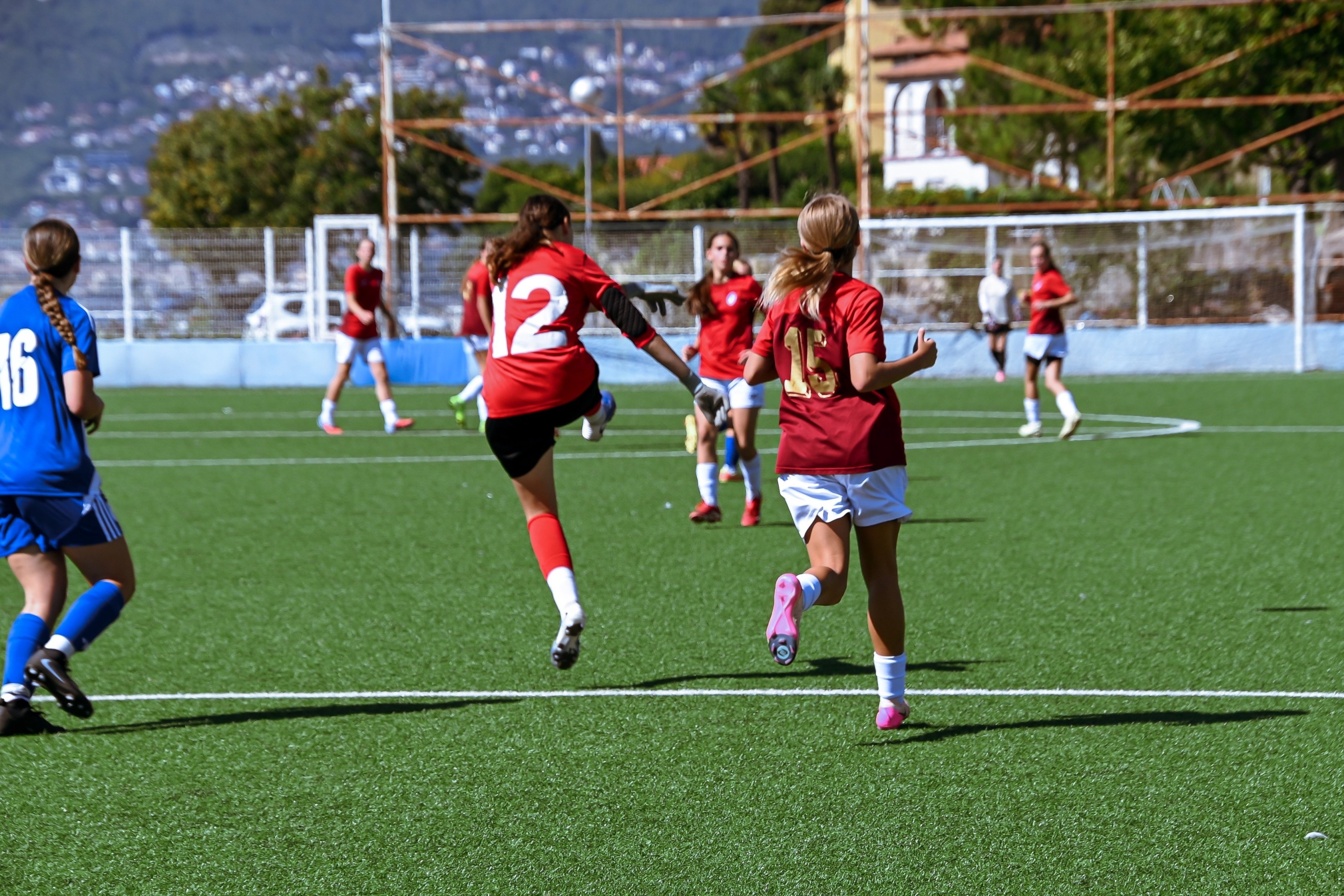 Nakon njih na teren s umjetnom travom u sklopu legendarnog stadiona “Kantrida” su izašle kadetkinje, koje su također odigrale kvalitetnu utakmicu. Dobra organizacija igre i strpljiva gradnja napada donijeli su im minimalnu, ali zasluženu pobjedu. Rezultat je bio 0:1, a junakinja susreta bila je Mia Jakoubek, koja je svojim pogotkom donijela sva tri boda.