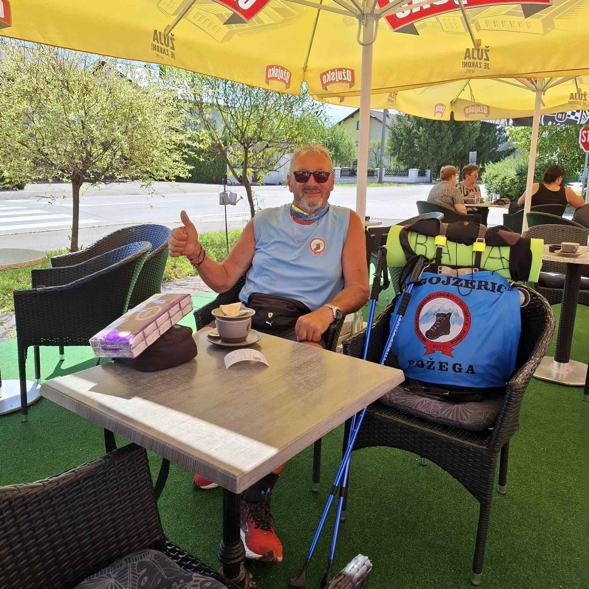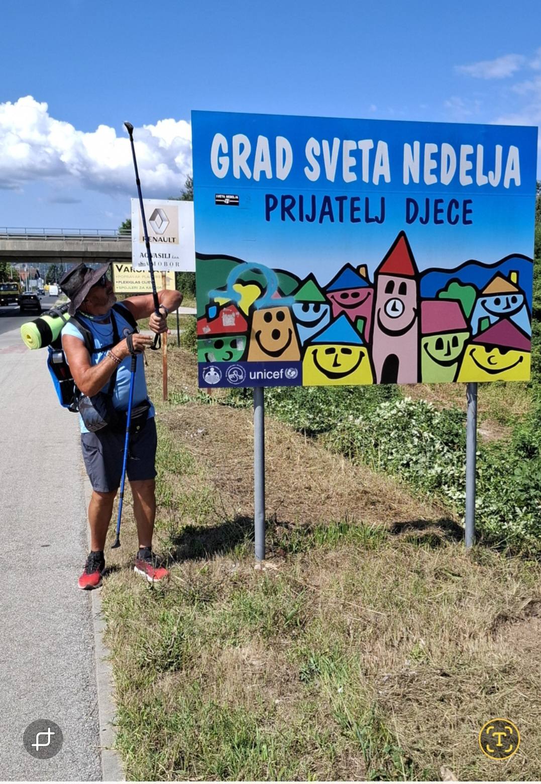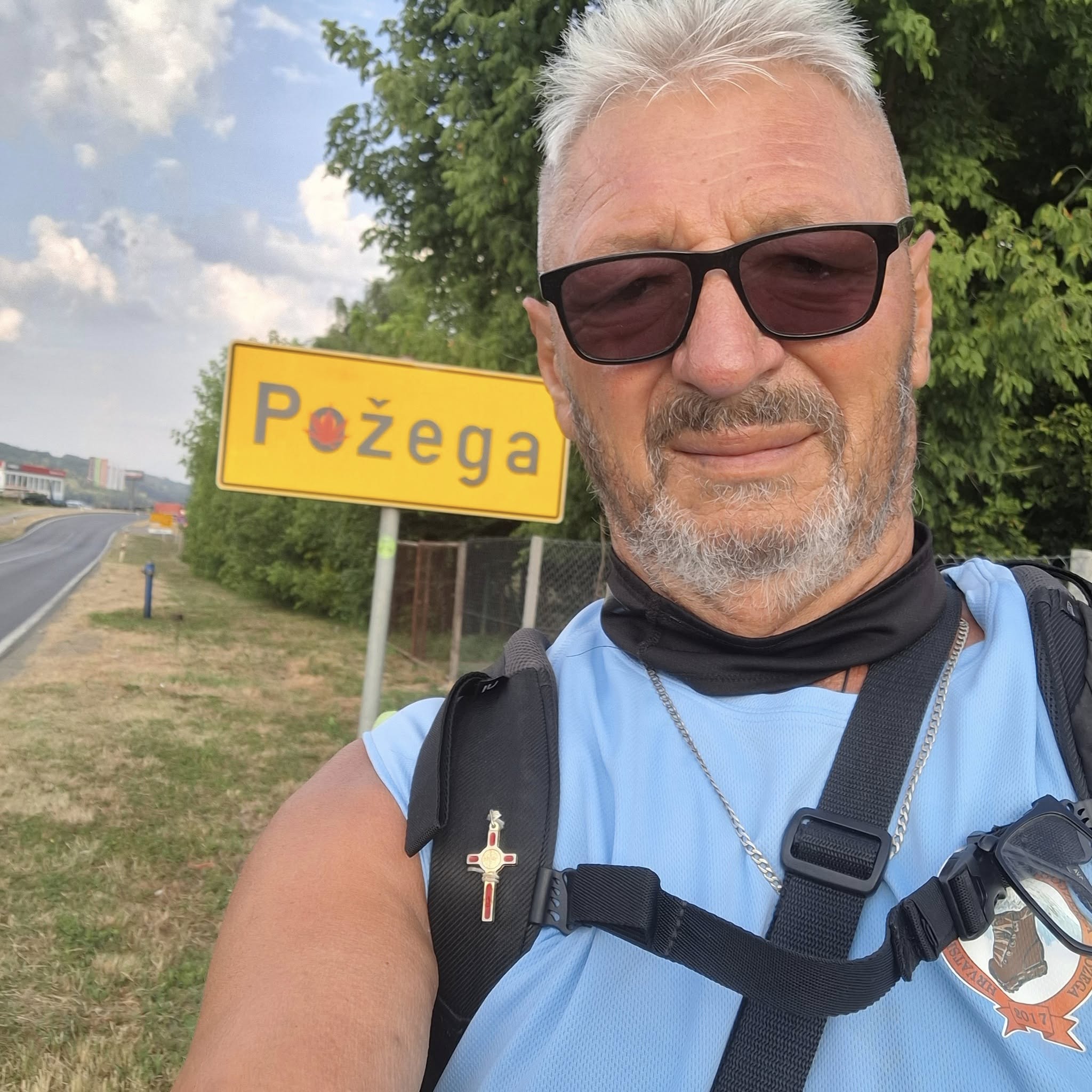 Po završetku spomenute etape slikovito je objavio na svom facebook profilu sljedeći tekst: ”Dobro zamišljena ruta, ostati će i dobro zapamćena i to još kao prvi dan od 13 dana Pož. Sesvete – Rovinj, ne po dužini rute od 60 km, a Bogu hvala dalo se dobro na hodati, već po objavljenim jakim ali kratkim pogoršanjem koje je trajalo od 11.45 h pa sa smirivanjem do iza 14 h.. Bogu hvala pa mi je moje HPD GOJZERICA IZ POŽEGE darivala kvalitetnu kabanicu koja se dobro pokazala za ovakve situacije. Nije smetnuti sa uma da vrijede i molitve potpore za svoga prijatelja hodočasnika Baju. No kako je tako je, na sve sam spreman i željno očekujem sljedeći dan do Međuriča.”