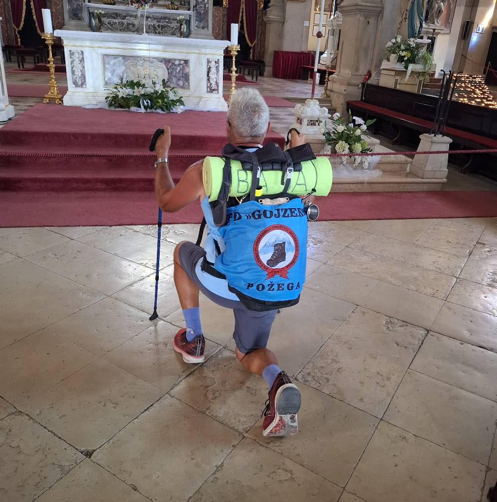 POŽEŠKE SESVETE / ROVINJ – Ivan Šedevi (Baja-Baja) iz Požeških Sesveta, inače član Hrvatskog planinarskog društva “Gojzerica” Požega, poznati je hodočasnik iz našeg kraja koji redovito pješači na marijanskim hodočašćima te usput prolazi stotine pa i tisuće kilometara na pojedinim hodočašćima. Ovaj puta odvažio se na jedno od ”kraćih” zavjetnih hodočašća u dužini od 500-tinjak kilometara, u 13 dana. Krenuo je iz svojih Požeških Sesveta rano ujutro 7. srpnja u 4:30 sati, na prvu etapu od 62 km prema Gornjim Bogićevcima.
