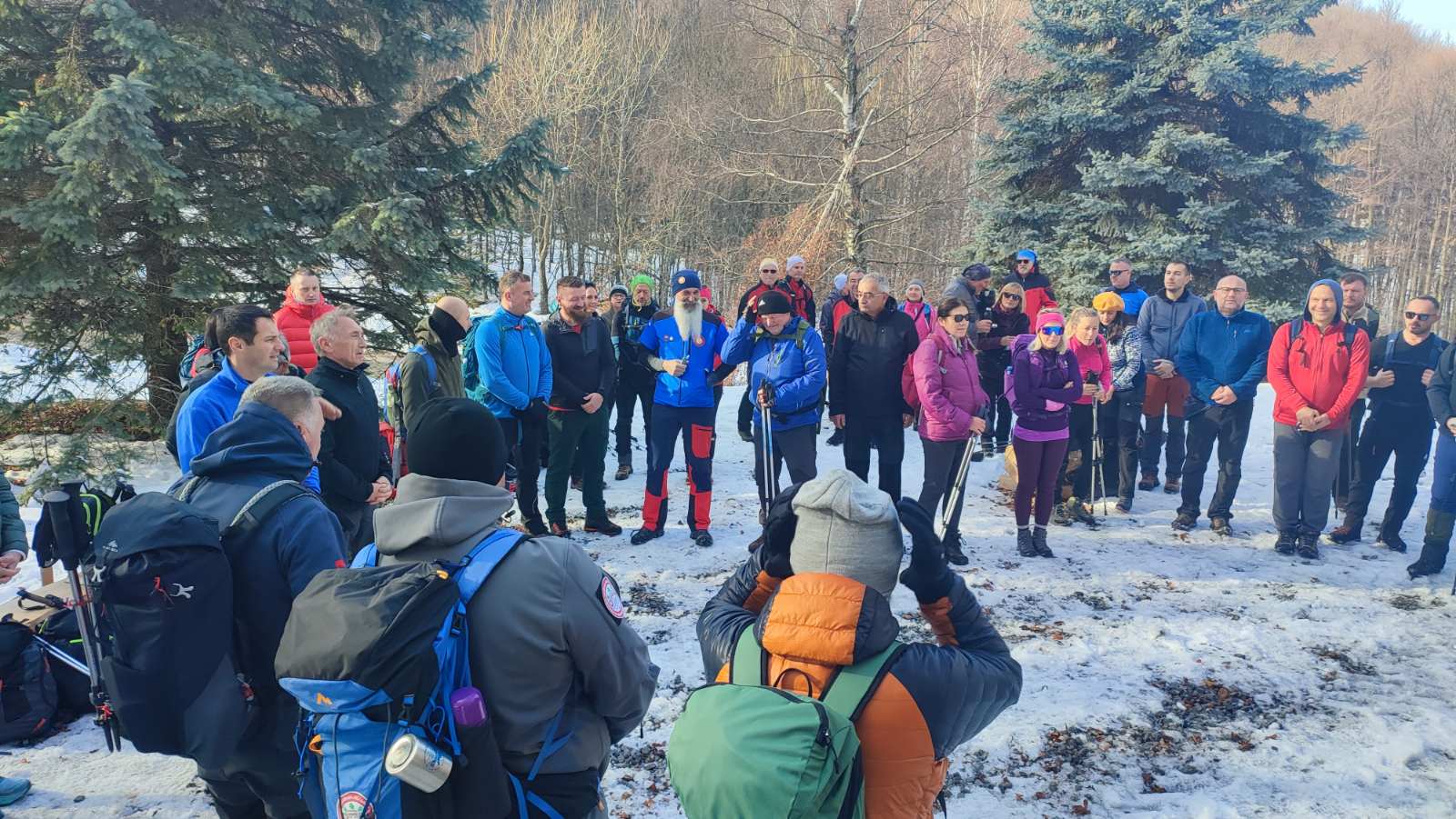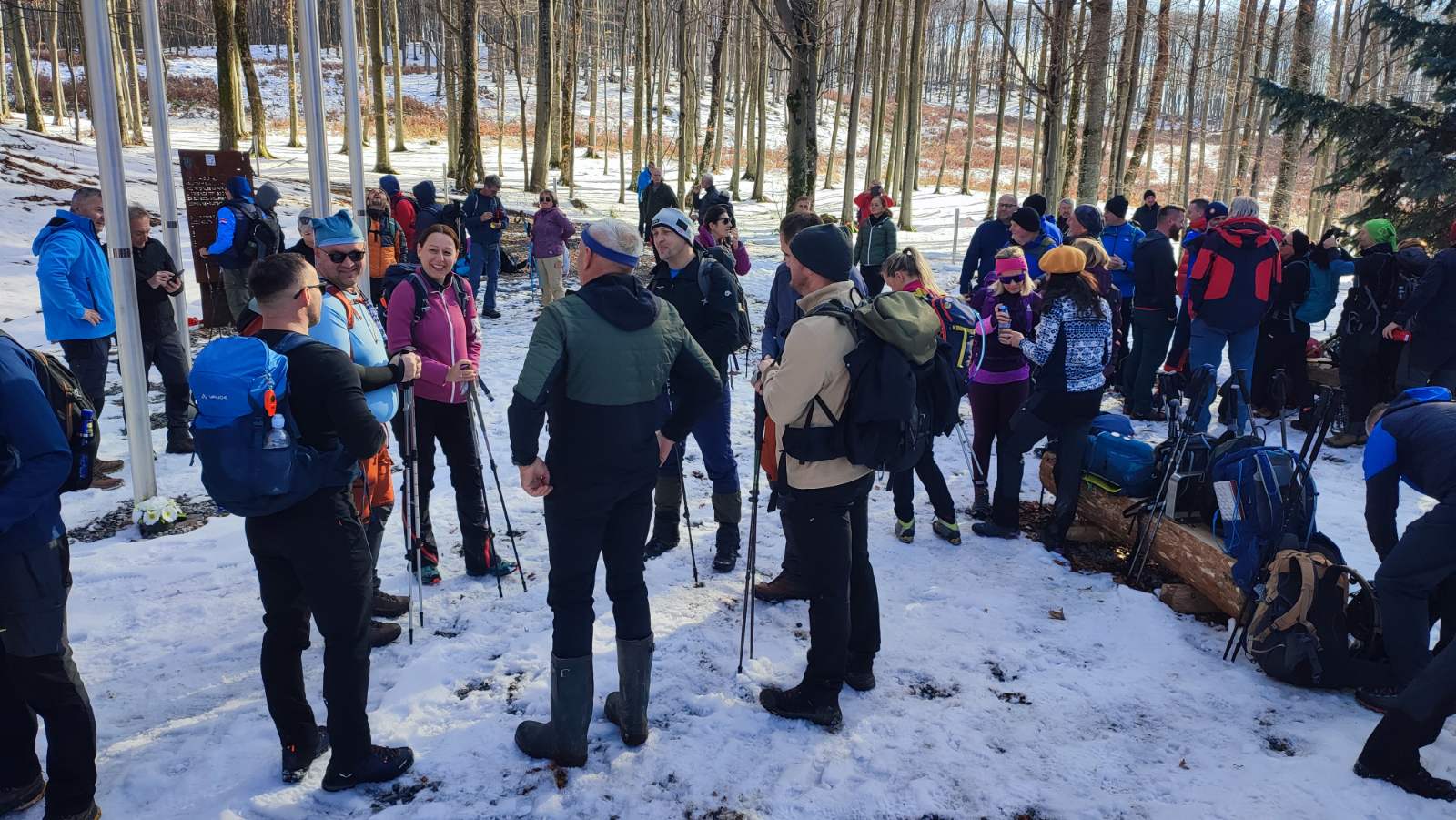 Mnogobrojne planinarske udruge iz Slavonije i Požeštine okupile su se kod crkve sv. Augustina u Velikoj, gdje je sve sudionike dočekala okrjepa i topli čaj te pozdravna riječ organizatora ovog hvale vrijednog pohoda. Planinari su se zatim uputili dobro poznatom stazom koja vodi pored Veličkog grada i vrha Lapjaka, kroz neke od najljepših predjela Papuka, sve do spomen-obilježja. Tijekom uspona uživali su u prekrasnim vidicima i šumskom ambijentu karakterističnom za ovo doba godine. Na pojedinim dionicama staze morali su gaziti snijeg i duboko blato, što je dodatno otežalo hodanje, ali i još snažnije naglasilo autentični doživljaj zimskog Papuka.