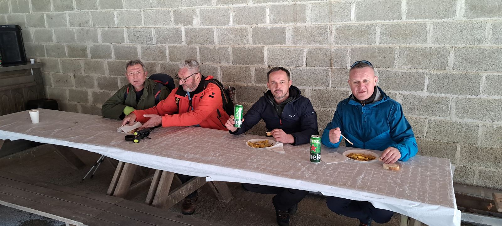 Po završetku pohoda ljubazni domaćini su ih dočekali kod Lovačke kuće, gdje su za njih pripremili nekoliko stotina porcija kajgane od srimuša po vrlo pristupačnoj cijeni. Za kraj uslijedio je povratak cestom u Veliku te odlazak na kavu i piće, po terasama obližnjih ugostiteljskih objekata.