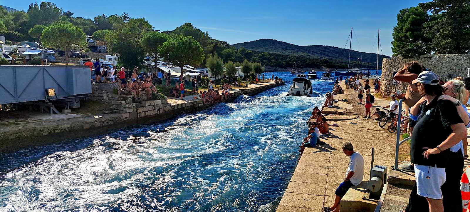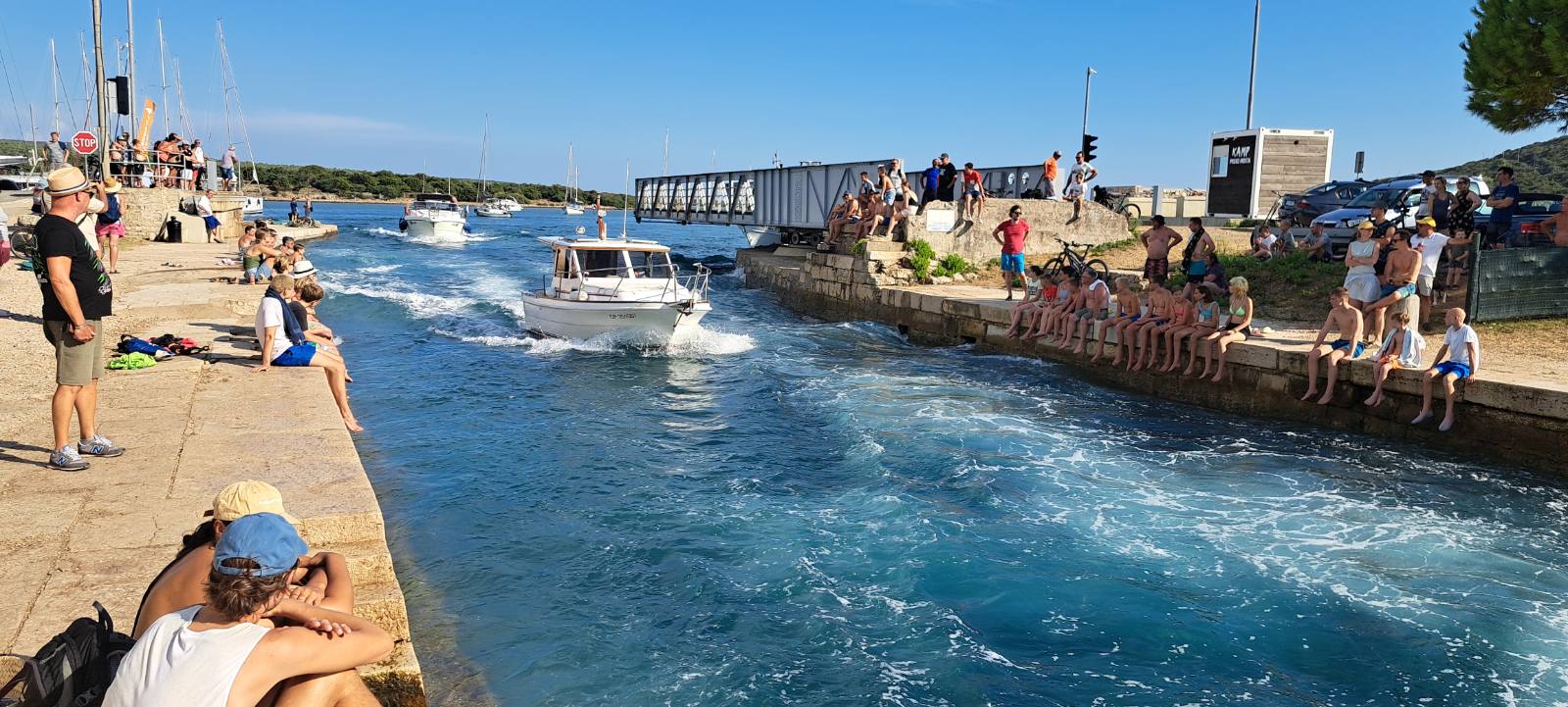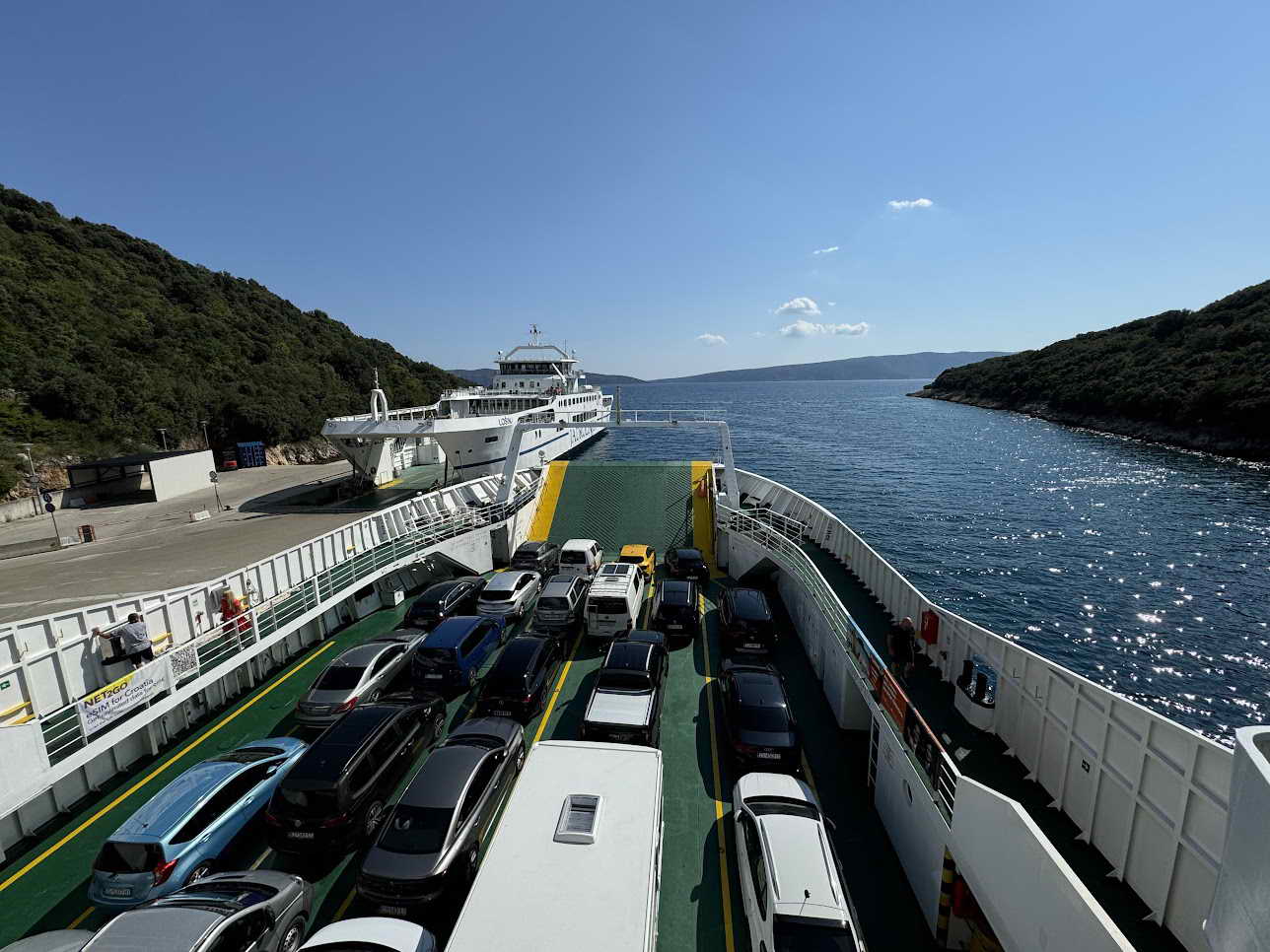 Prvi dan krenuli su iz Požege u ranim jutarnjim satima, u četvrtak 8. kolovoza, kako bi se popeli na Obzovu 569 mnv, najviši vrh otoka Krka. Do vrha su stigli nešto ranije od planiranog, tako da im je ostalo dovoljno vremena za spustiti se do Baške i požeškog odmarališta ”Valis Aurea”. Ondje su se kratko odmorili, popili piće i sreli neke poznate Požežane, a onda krenuli na trajekt za Cres. Stigavši u trajektnu luku Valbiska ukrcali su se na trajekt za Merag, a nakon silaska s trajekta nastavili do Osora. To je naselje smješteno na granici dvaju otoka: Cresa i Lošinja, gdje se nalazi umjetno prokopani kanal koji ih razdvaja. Most koji povezuje otoke redovito se razdvaja, kako bi umjetnim kanalom prošle brodice koje žele skratiti put i uštedjeti vrijeme.