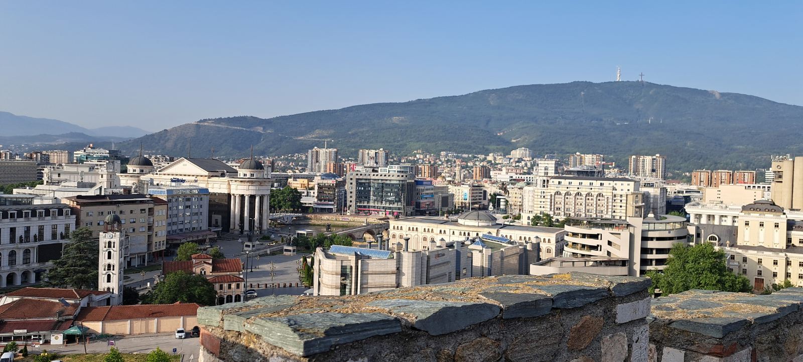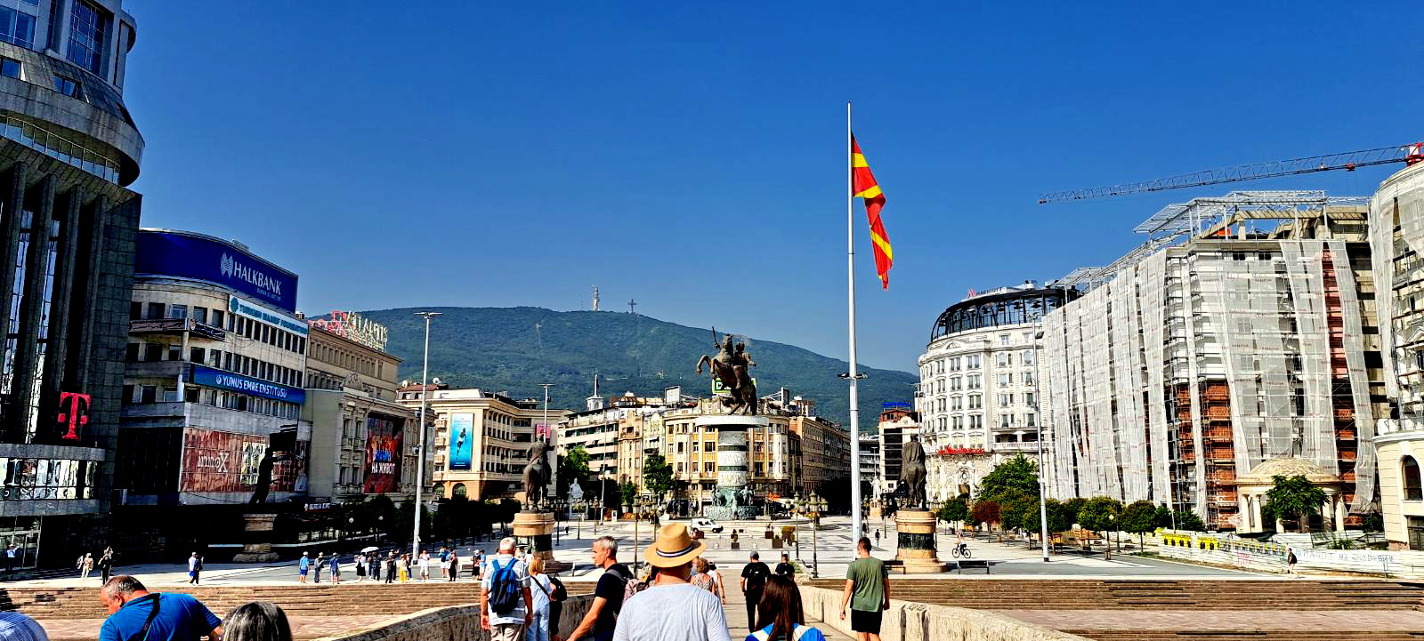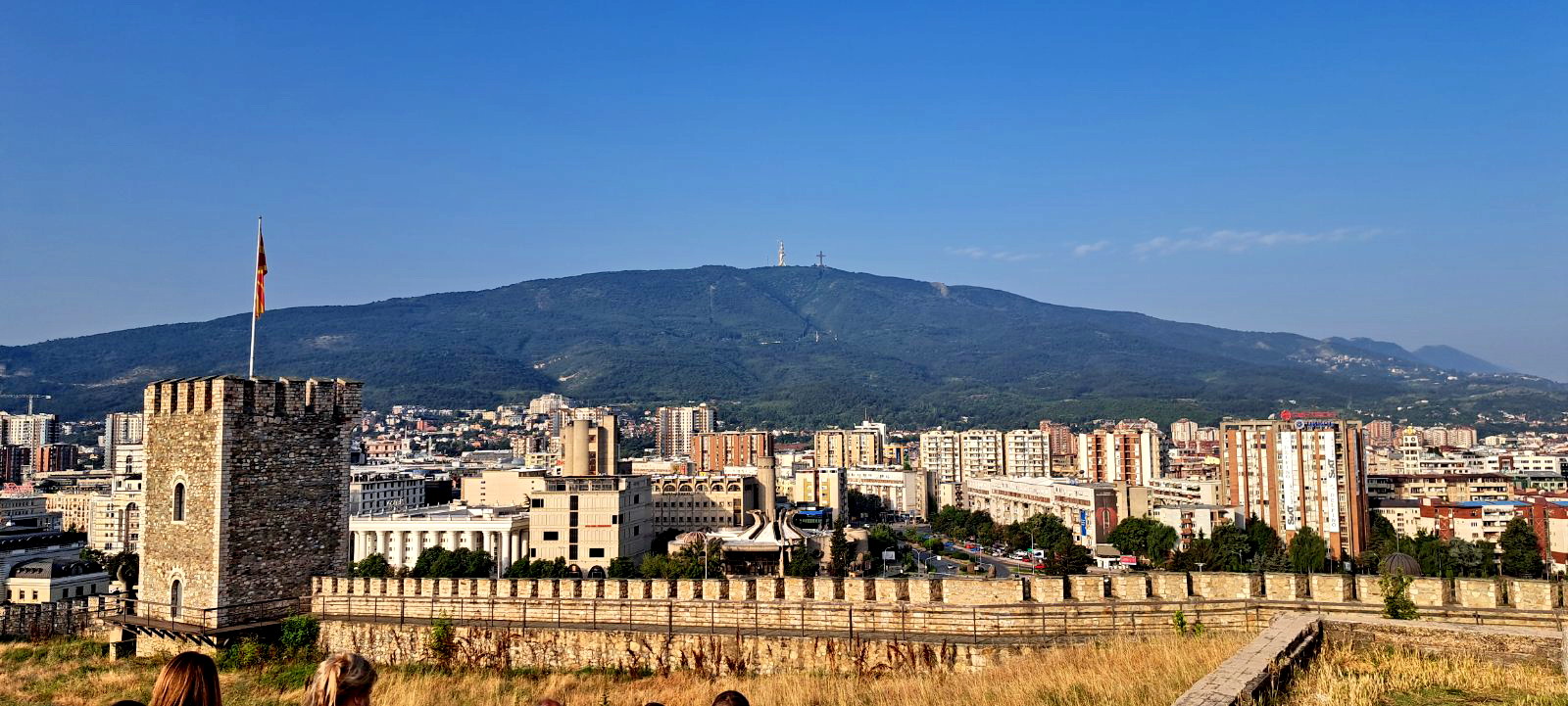 Nakon cjelonoćnog putovanja autobusom preko Hrvatske, Srbije i Makedonije, u ranu zoru stigli su do Skopja. Tu ih je dočekao srdačni Živko, zajedno s Matejom koji je noć prije doputovao avionom iz Zuricha samo zbog ovog izleta. Velika grupa od pedesetak planinara odmah je krenula u turistički obilazak Skopja, tijekom kojega su obišli: tvrđavu Kale u neposrednoj blizini stadiona Vardara, stari turski dio grada, centar grada sa spomenicima posvećenim znanim i neznanim makedonskim junacima, rodnu kuću Marije Terezije i stari željeznički kolodvor sa zaustavljenim satom uslijed potresa 1963. godine. Za kraj svog obilaska ostavili uspon žičarom na Vodno, brdo koje svojom visinom od preko tisuću metara suvereno dominira gradom u dolini rijeke Vradara.
