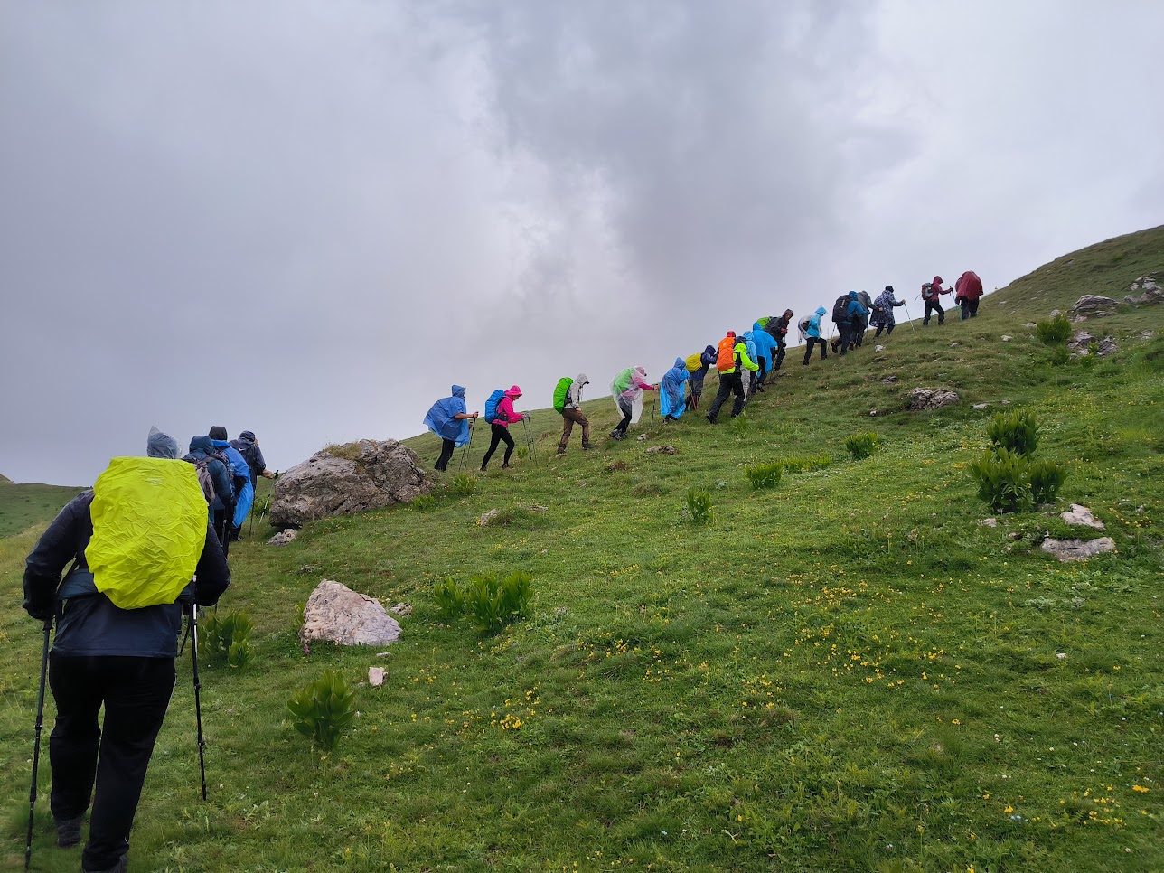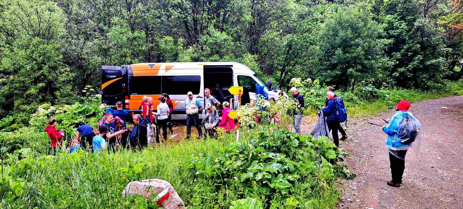 Povratak dolje bio je još zahtjevniji zbog stalnog proklizavanja uslijed skliskog terena i nastavka nesmiljenog vremena koje nije posustajalo iako su svi bili mokri do kože. Stigavši do kombija vrijeme se razvedrilo pa je krenulo opće veselje, zbog ostvarenog uspona tijekom kojega se na vrh popelo 26 planinara.