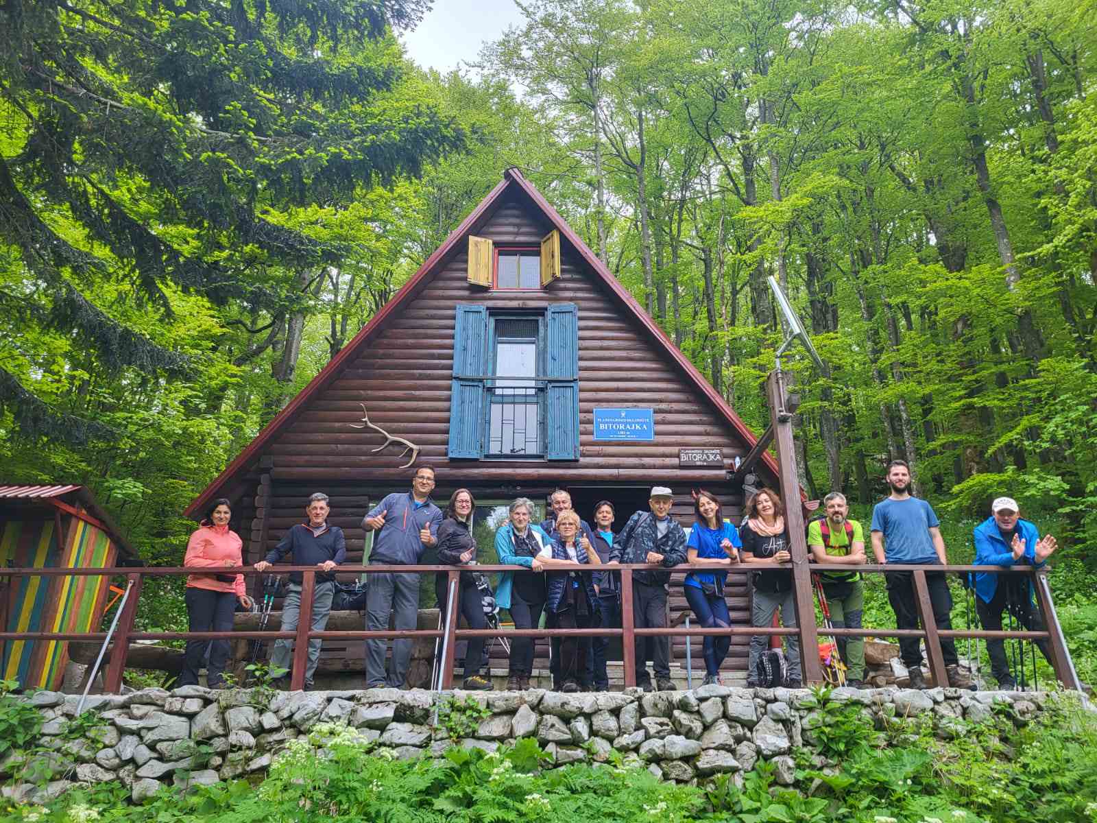 POŽEGA / FUŽINE – U ranim jutarnjim satima krećemo iz Požege i vozimo se prema Fužinama gdje se sastajemo sa ostalim članovima naše trodnevne avanture. Jedan dio ekipe ostaje u Fužinama, a mi ostali idemo prema Burnom Bitoraju. Do vrha idemo ne markiranim putem. Uskoro dolazimo do Planinarskog skloništa Bitorajka gdje srećemo jednog planinara iz Belgije koji hoda Via Dinaricu. S obzirom da je već dugo na putu dajemo mu rakiju, vodu, nešto hrane i slatkog kako bi imao za nastavak puta.